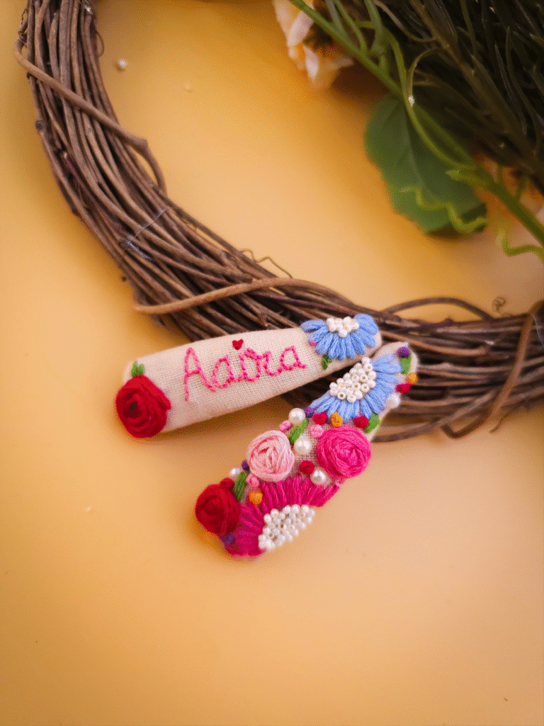 Blossom Whisper – Hand-Embroidered Floral Tic Tac Clip
