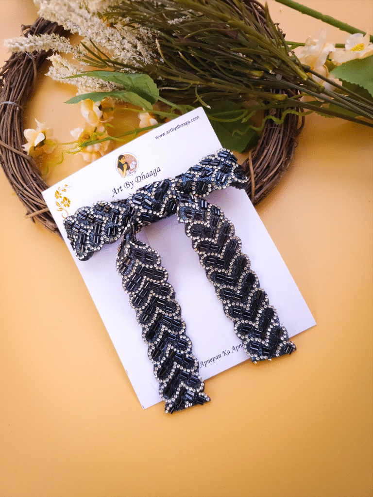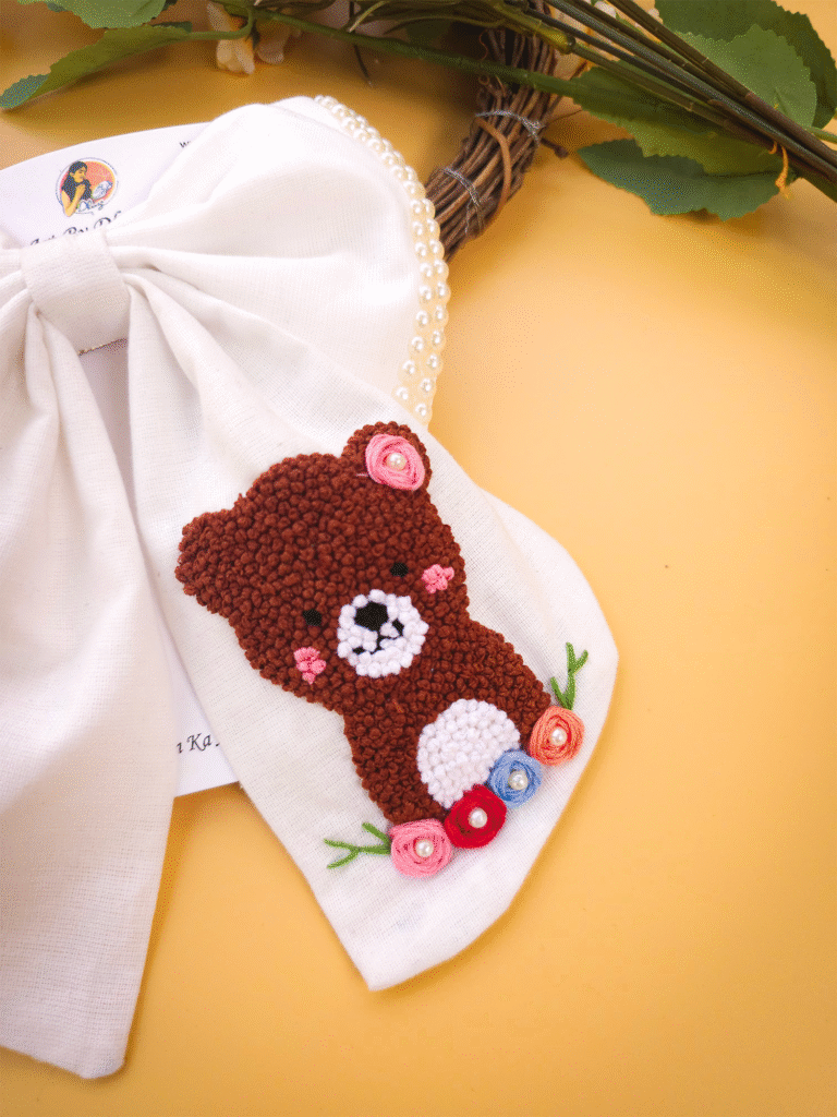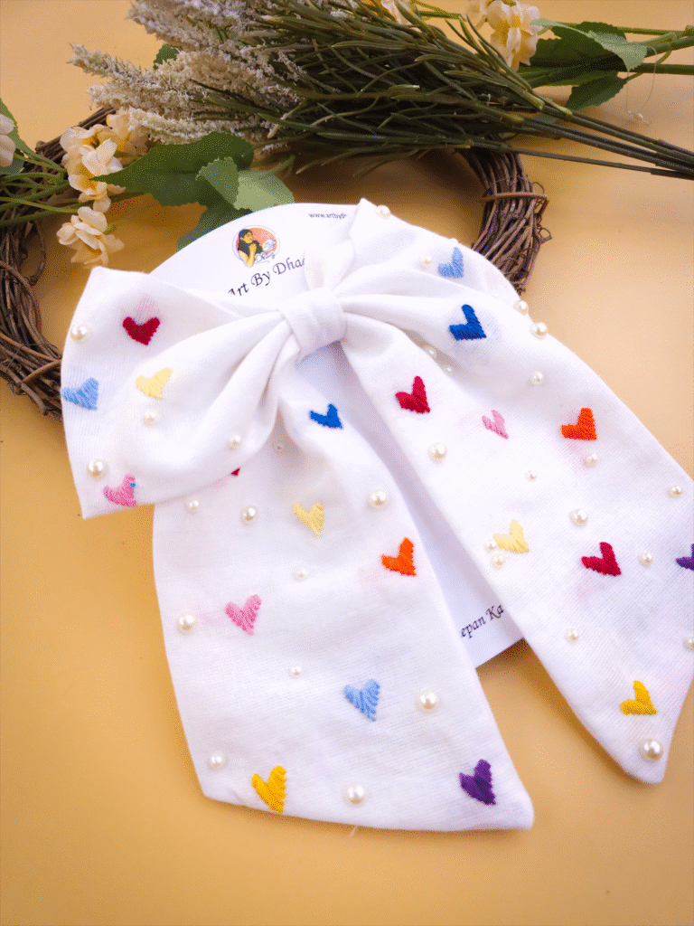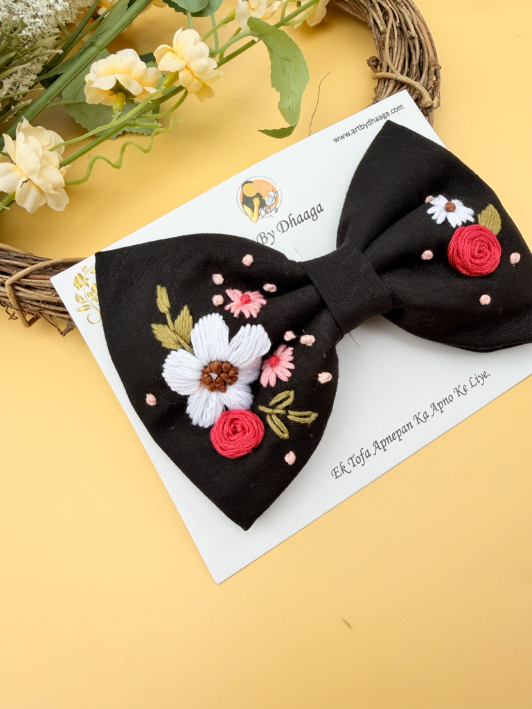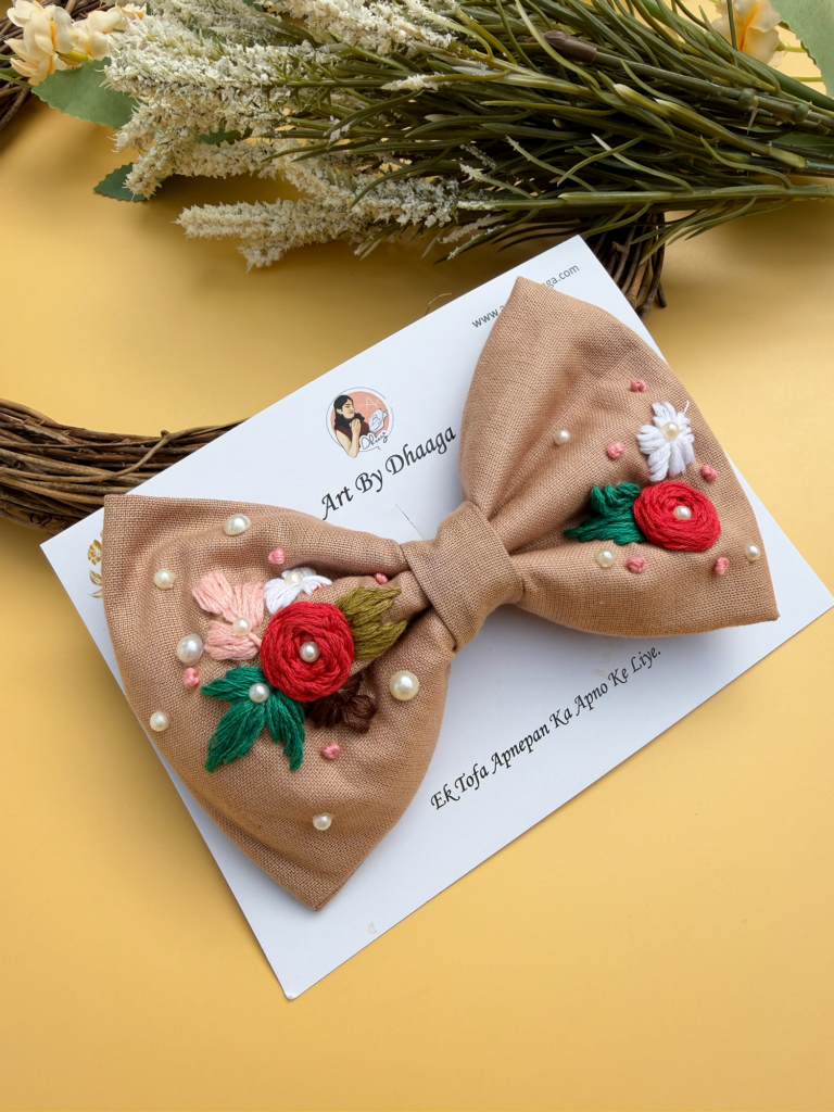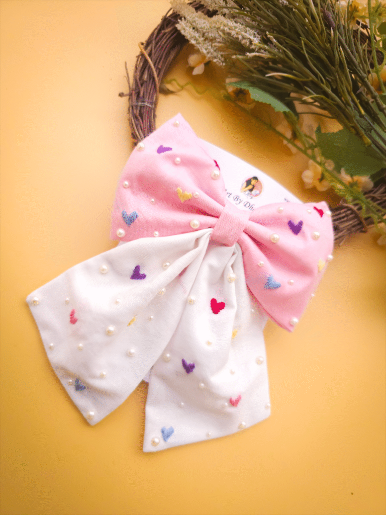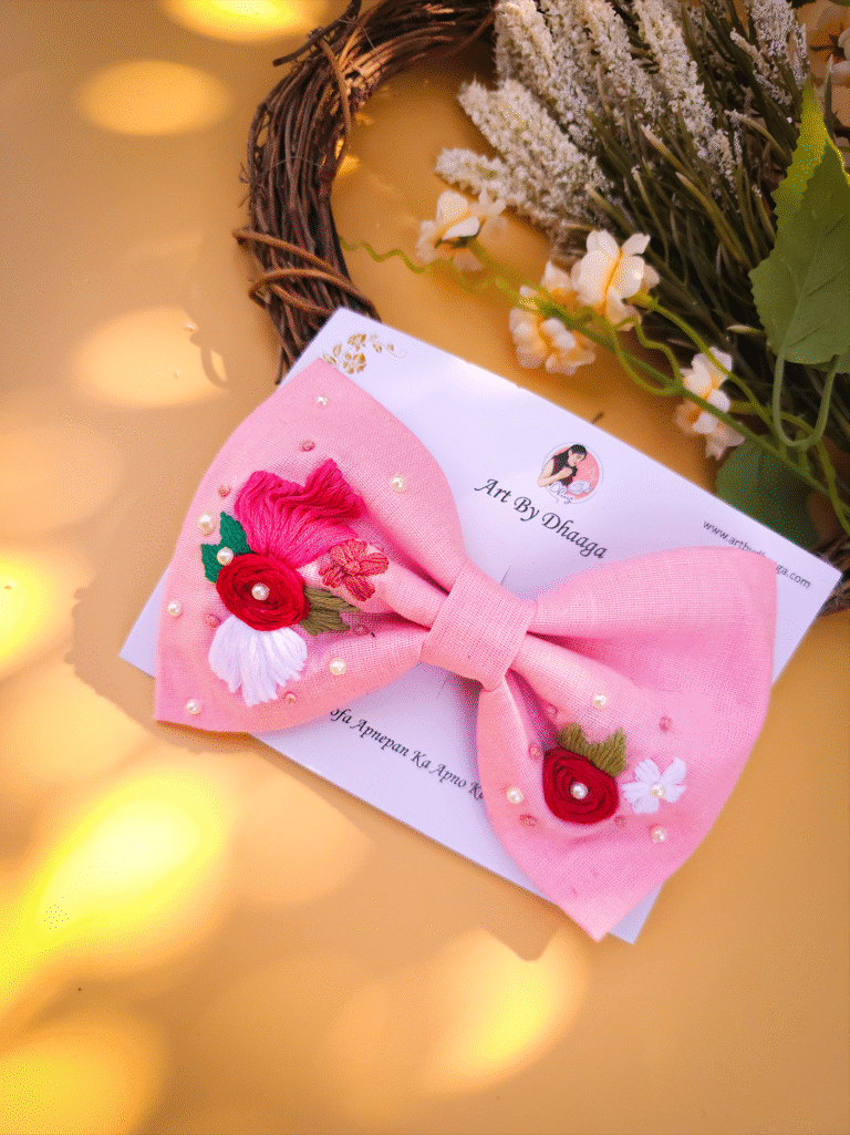Aaradhya–Pink💗 – Hand-Embroidered Floral Tail Bow