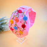 🌸 Flora – Pink | Hand-Embroidered Broad Floral Headband