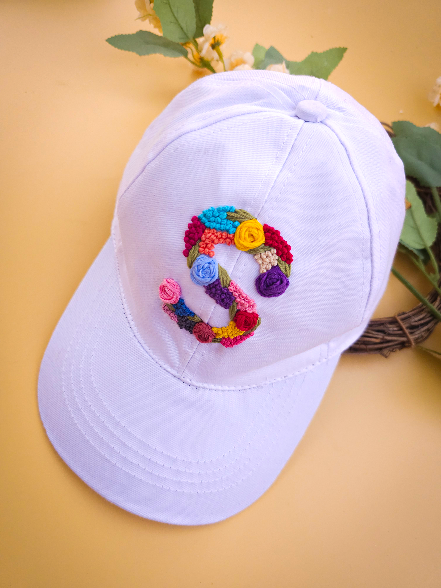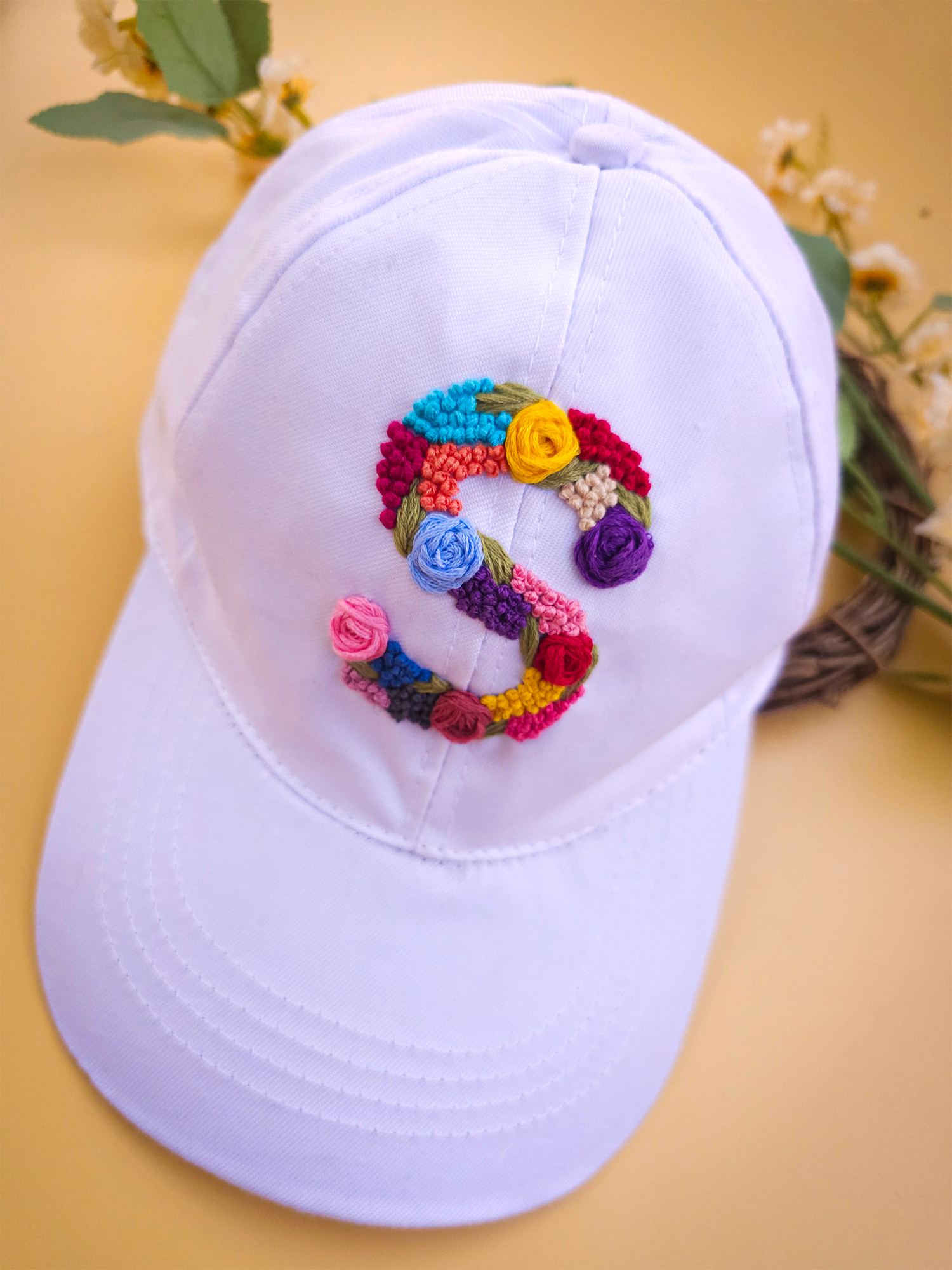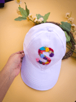 Name Whisper Cap is a soft white summer cap featuring your full name embroidered in a bold, elegant style. Every letter is stitched by hand, making this cap feel truly special and one of a kind.