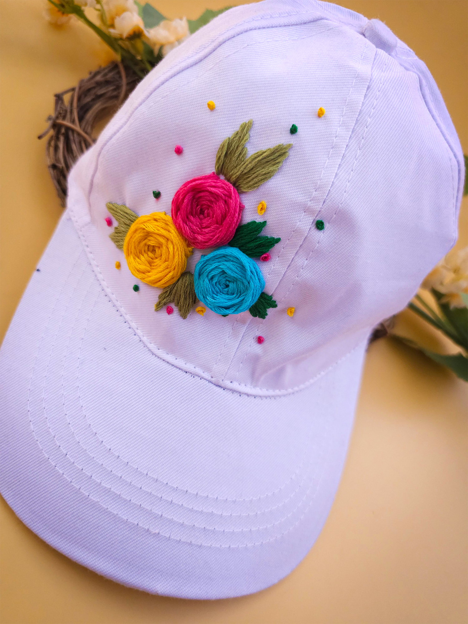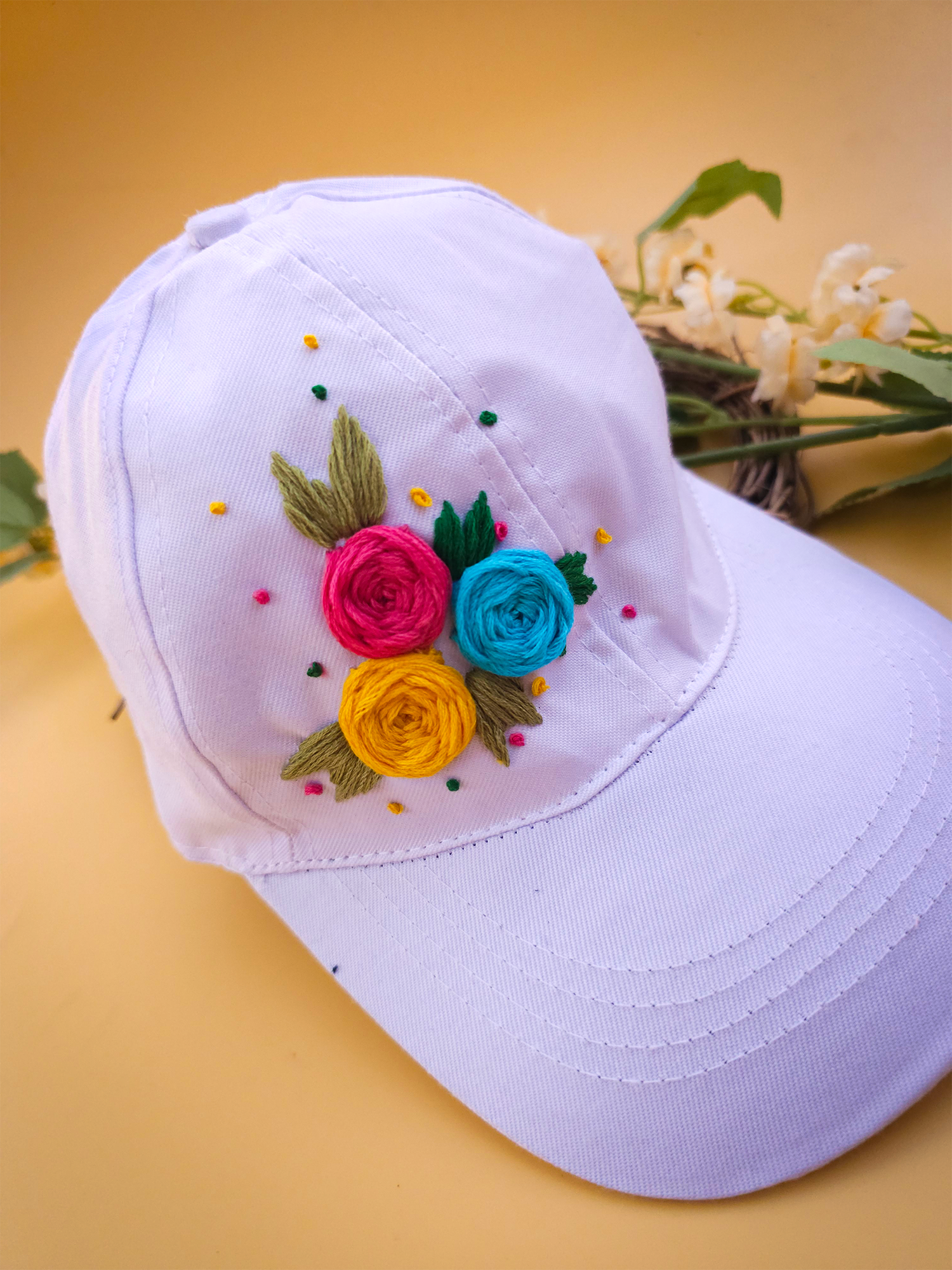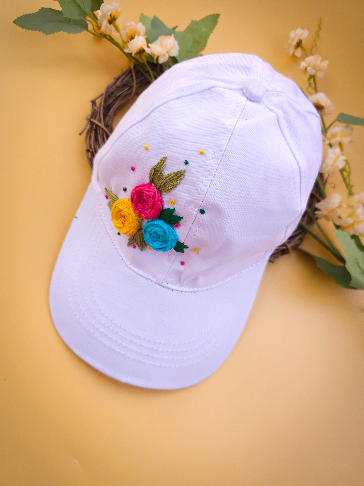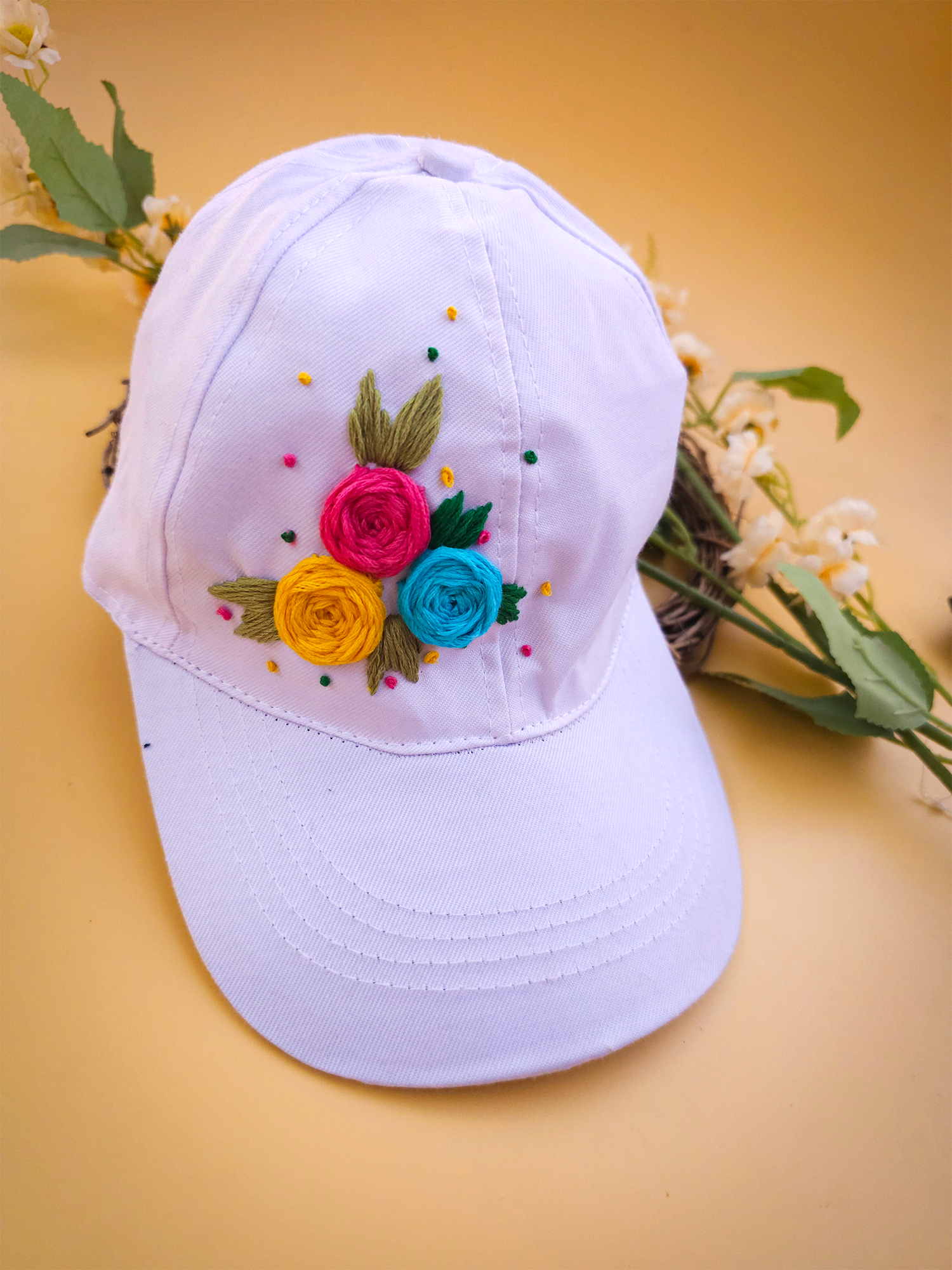 Each flower is hand-embroidered with care, making every cap feel special and unique. Light and comfortable, it’s perfect for sunny days, outings, school wear, or vacations.