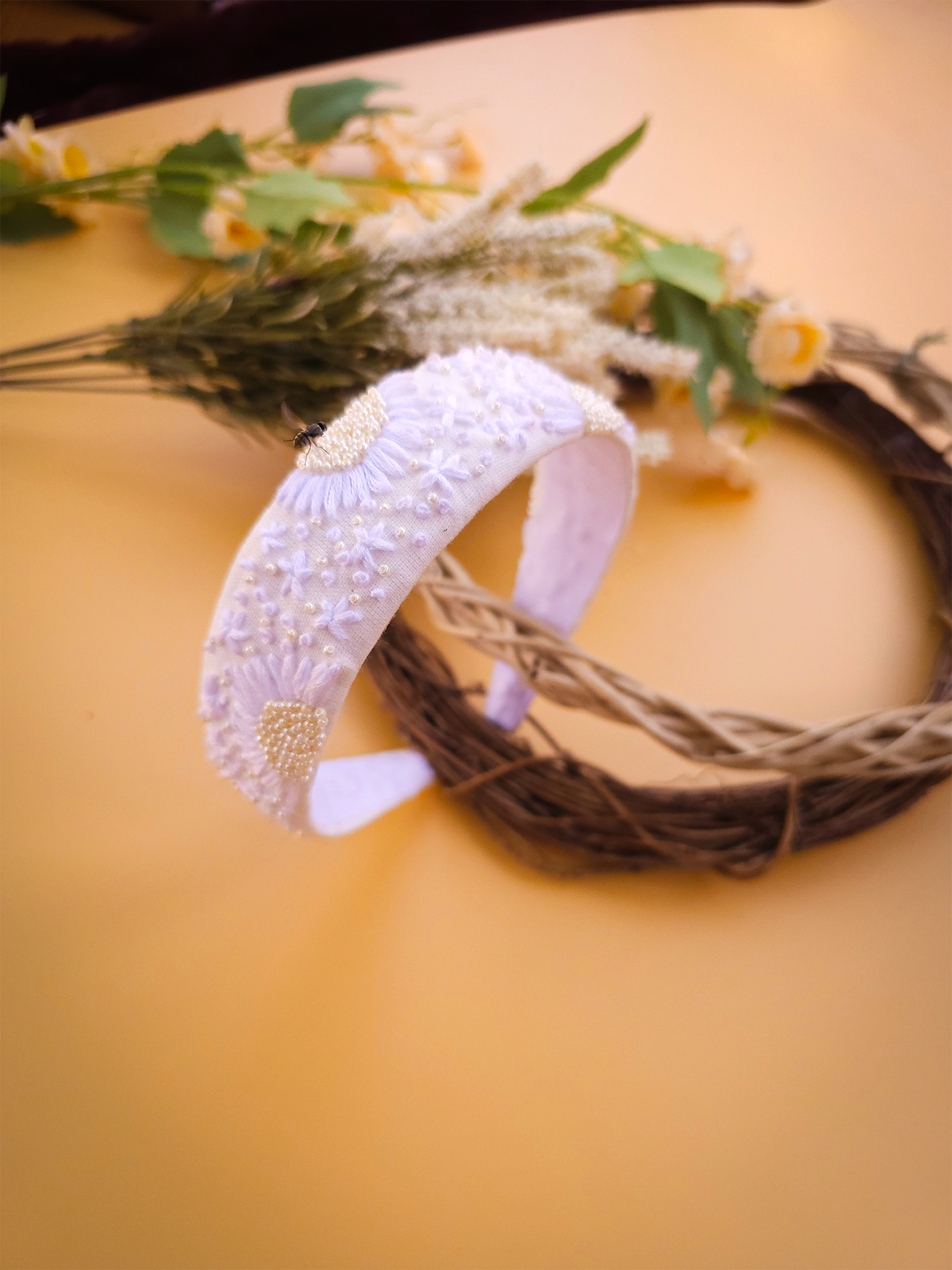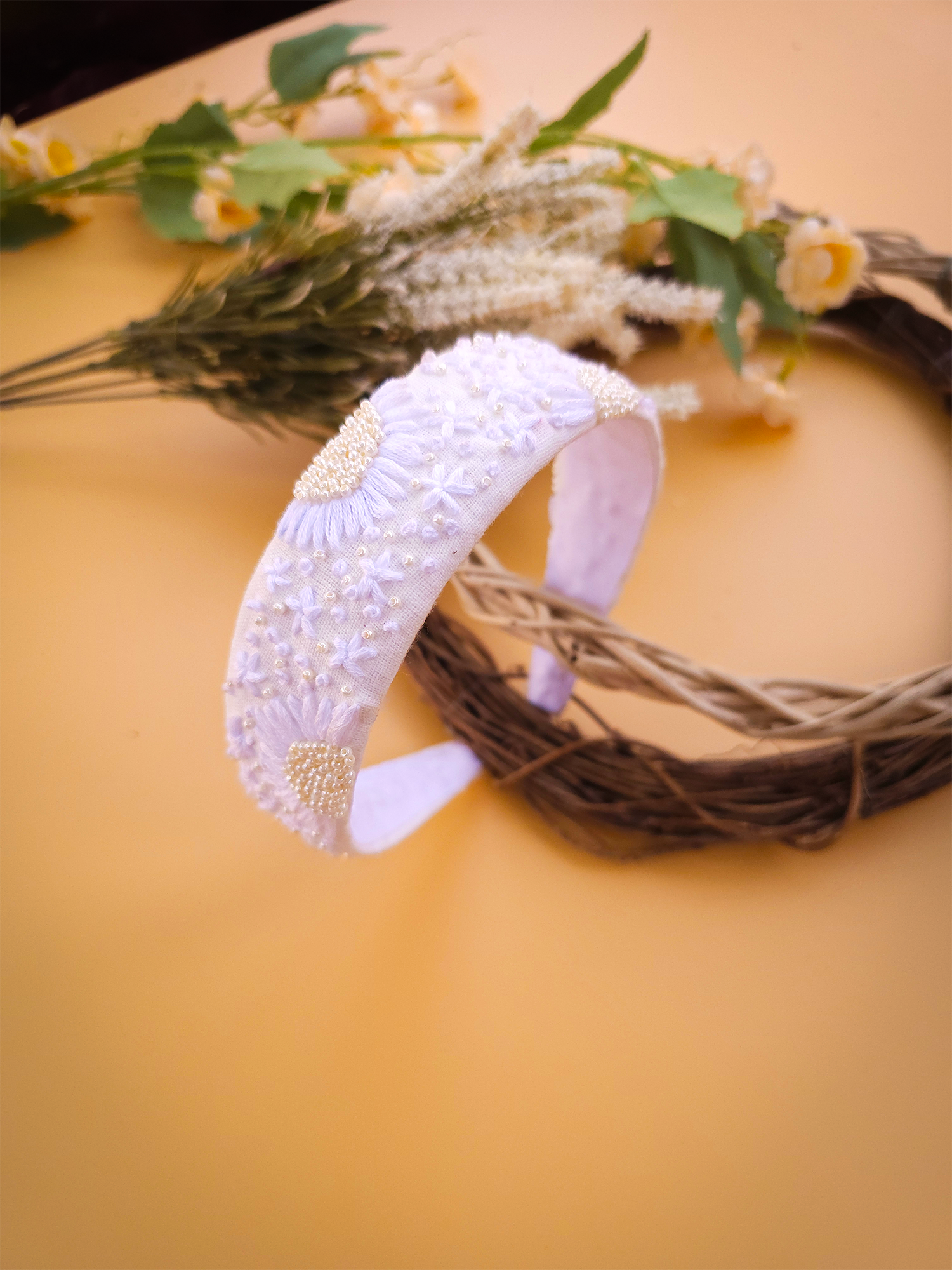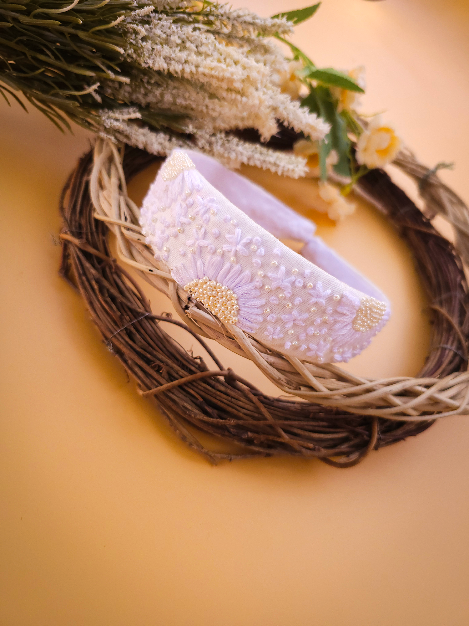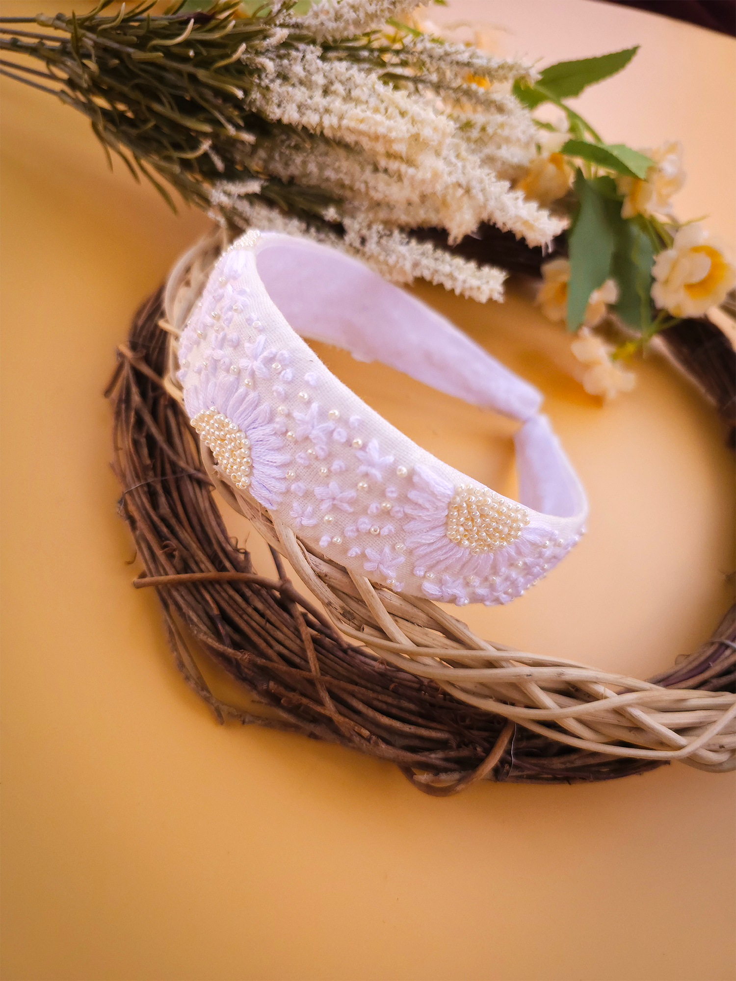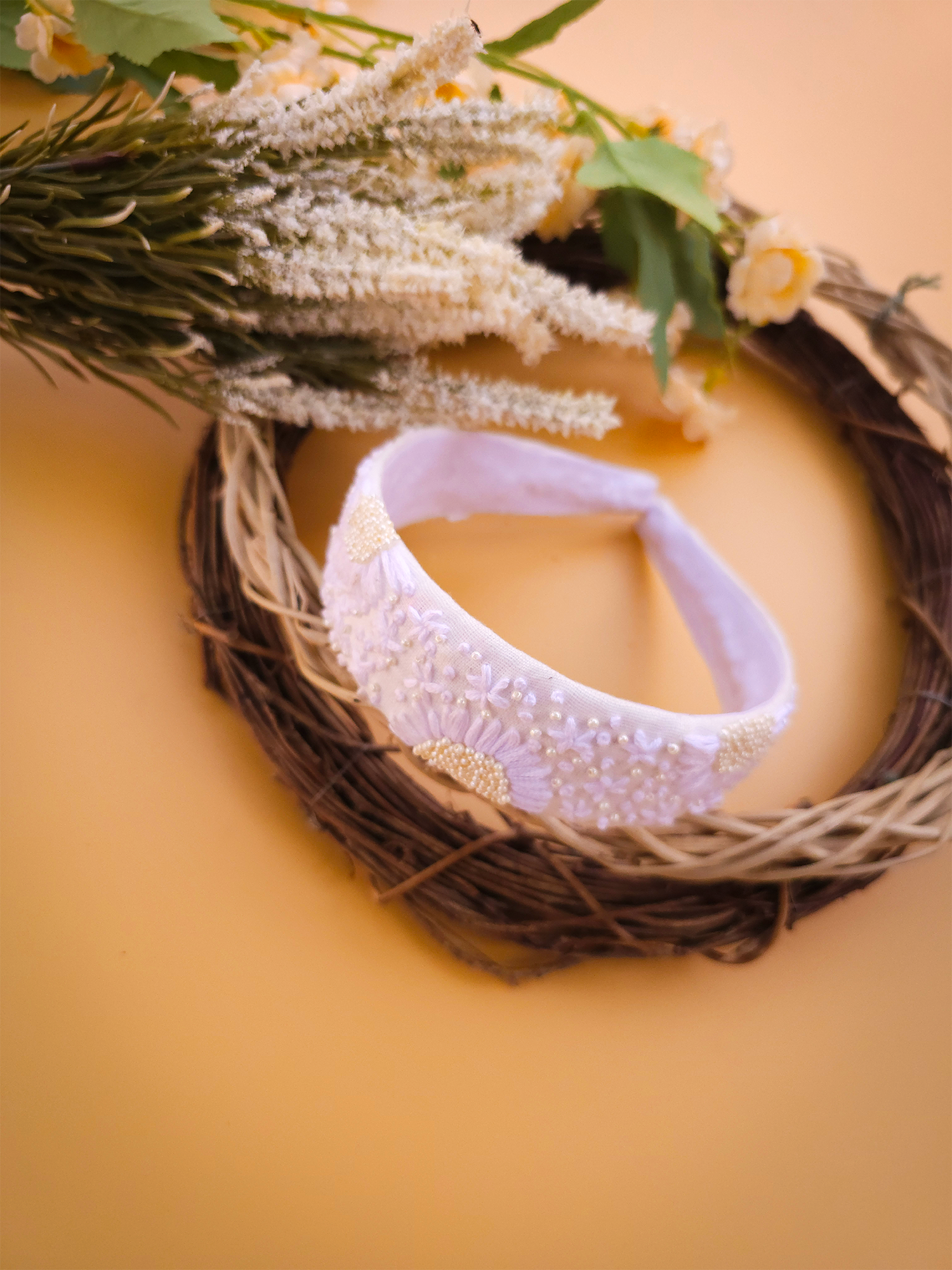 Snow White is crafted for the ones who love the purity and charm of classic white. This premium headband features delicate hand-embroidered pearl work that adds a gentle shimmer to every look.