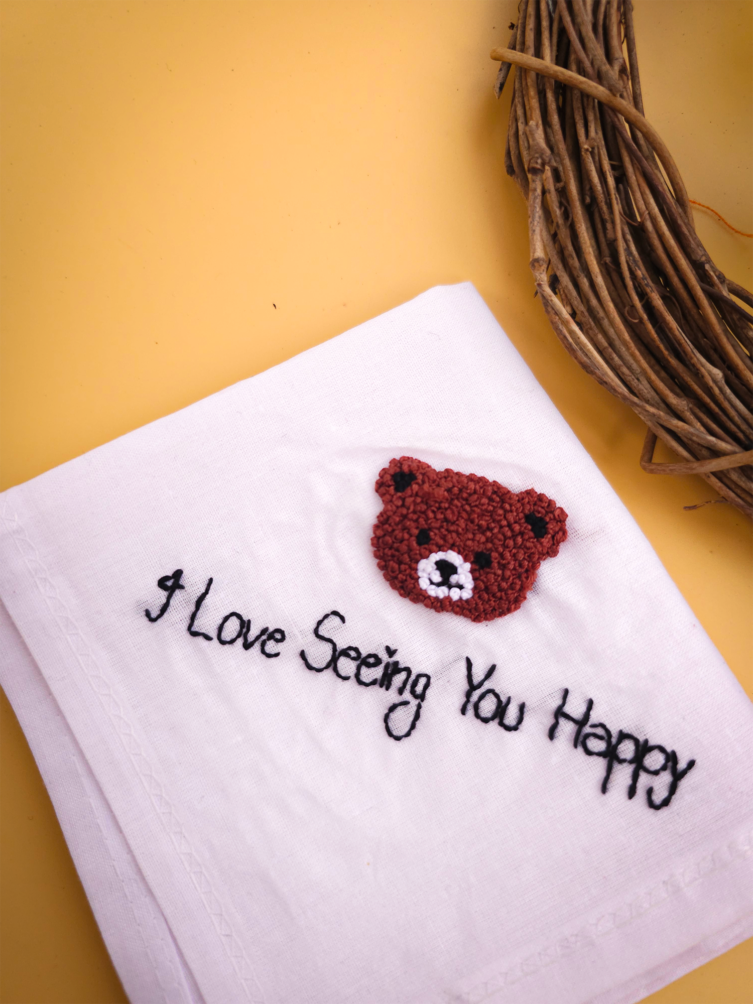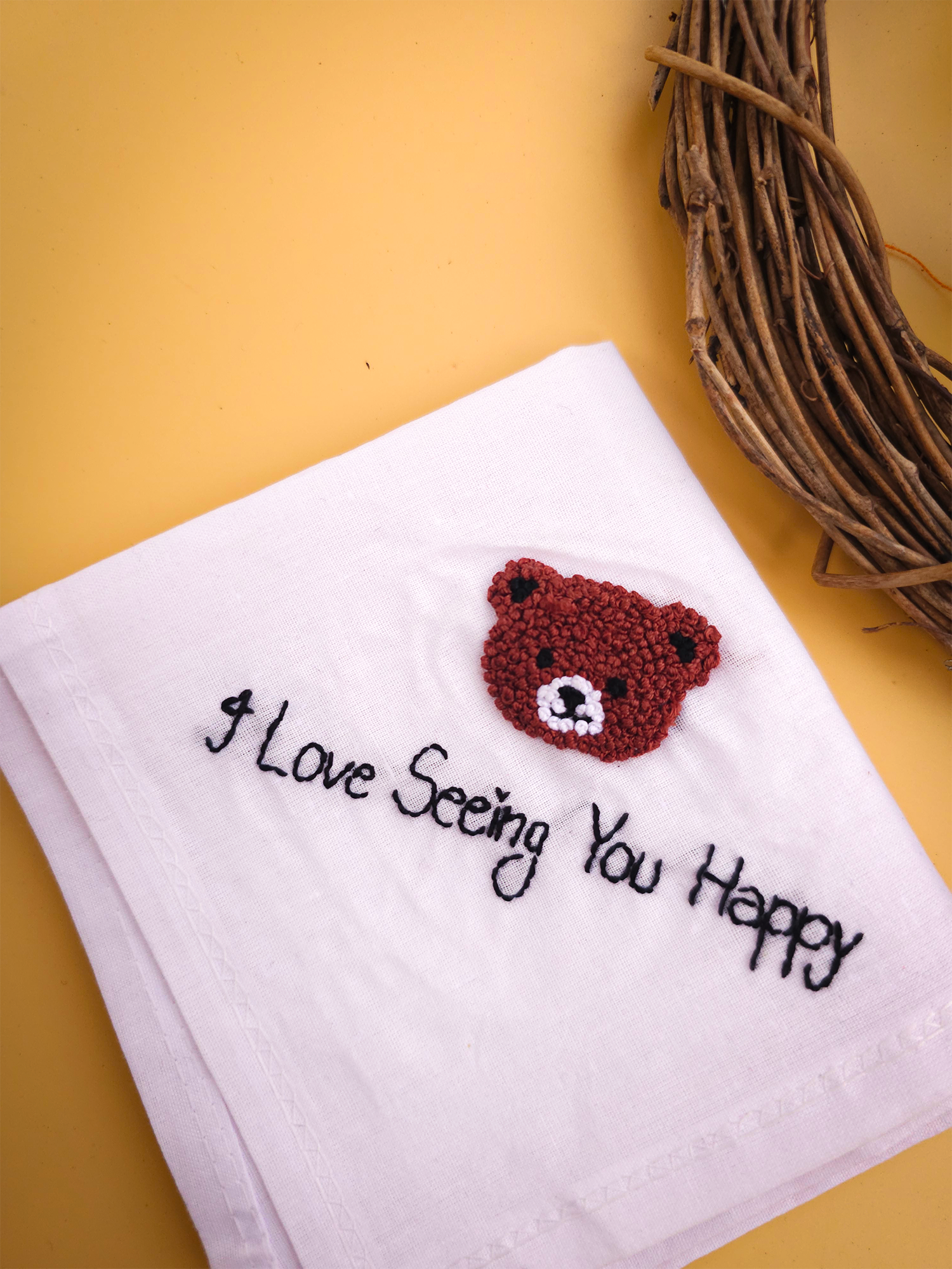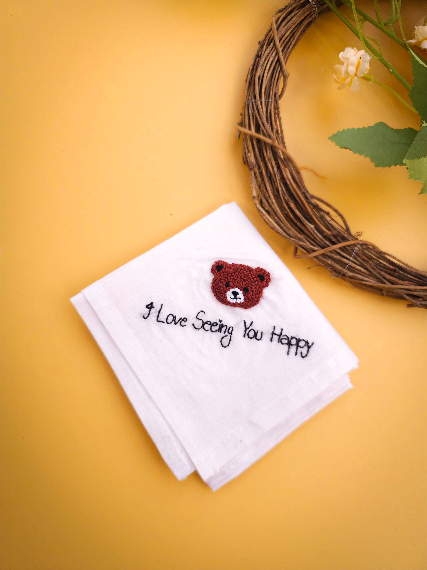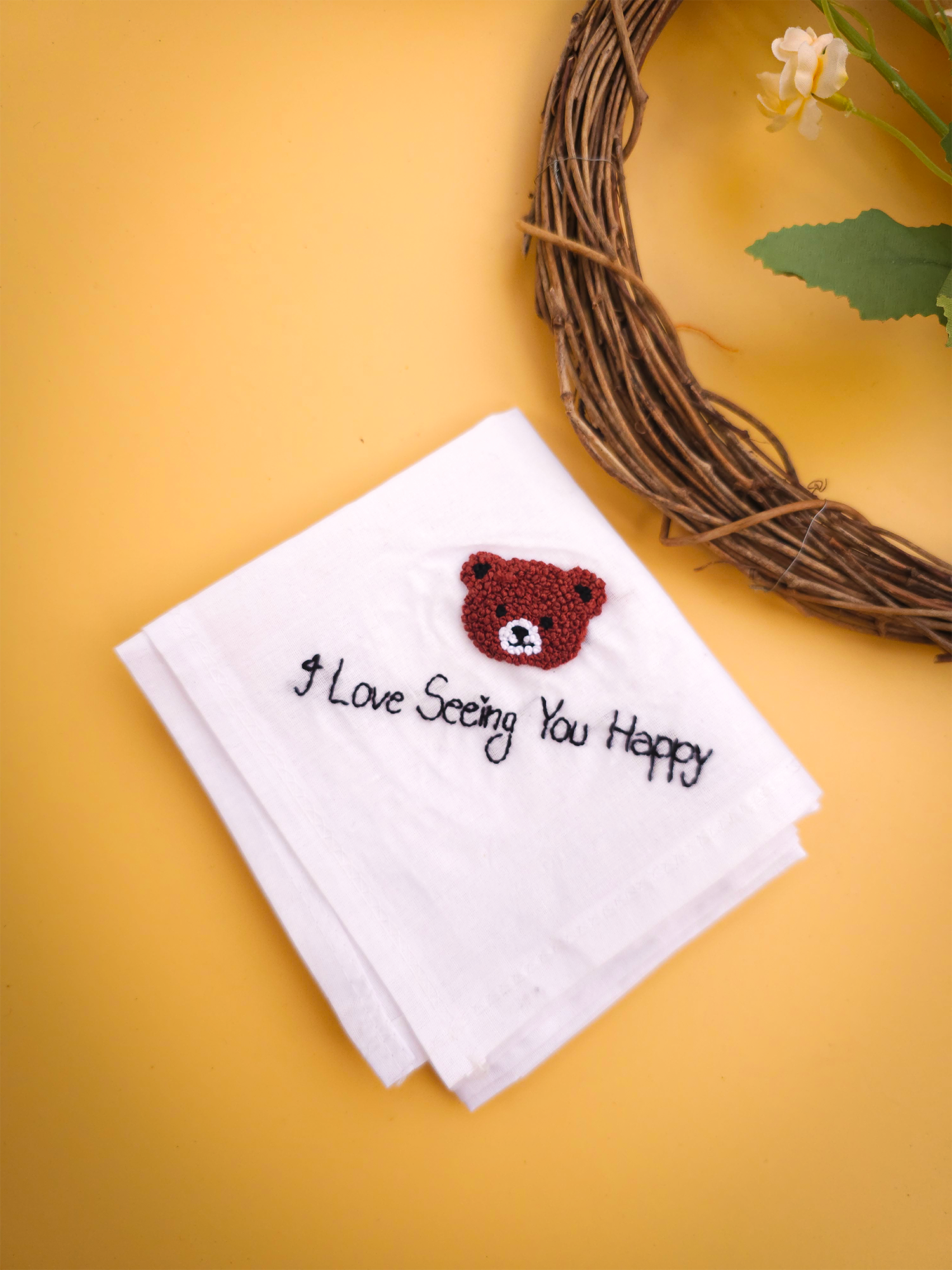 Teddy Cuddle Hanky is a pure white handkerchief featuring an adorable hand-embroidered teddy paired with your custom name. It’s the perfect mix of cuteness and sentiment — a keepsake she’ll treasure for years.