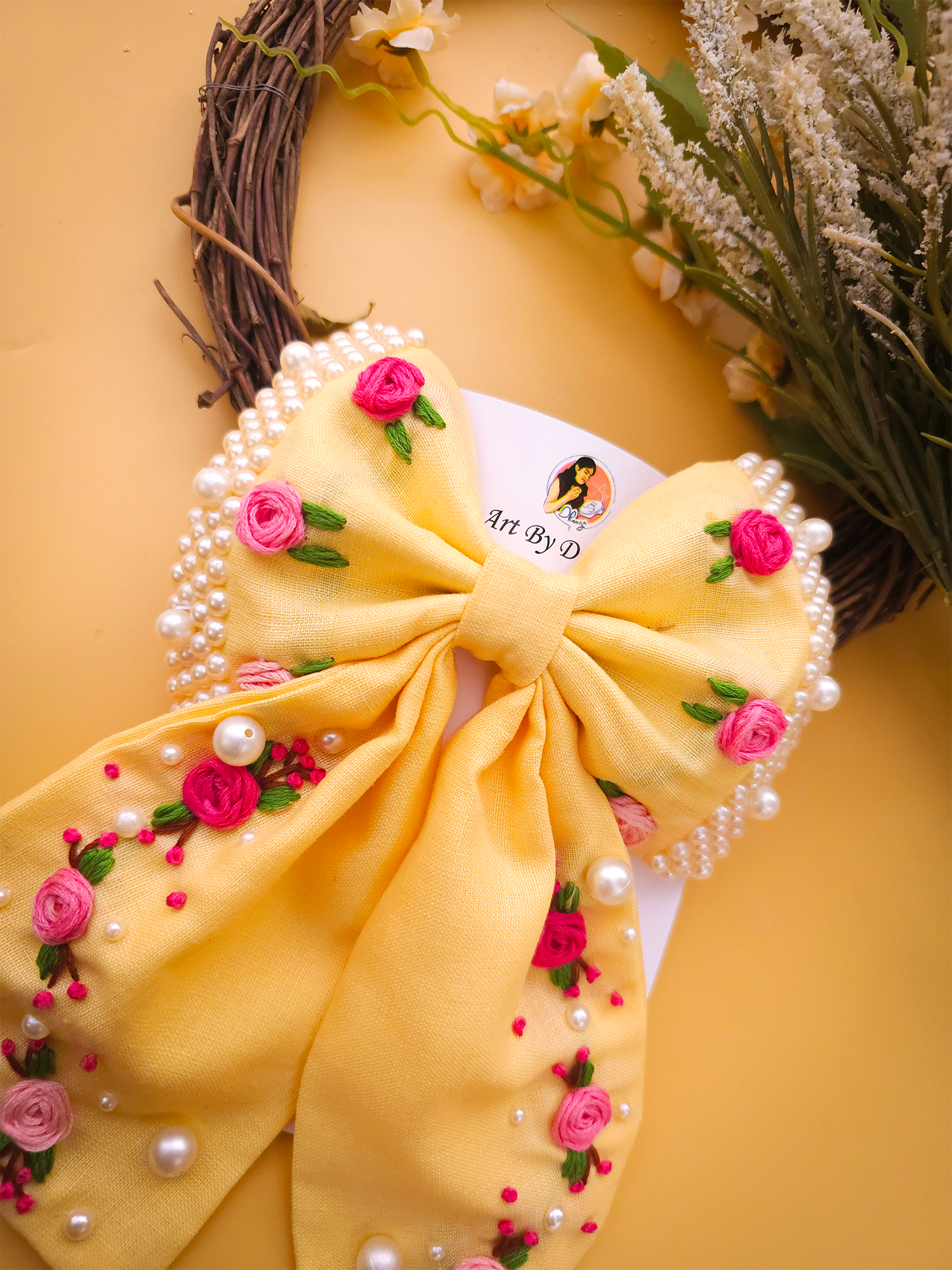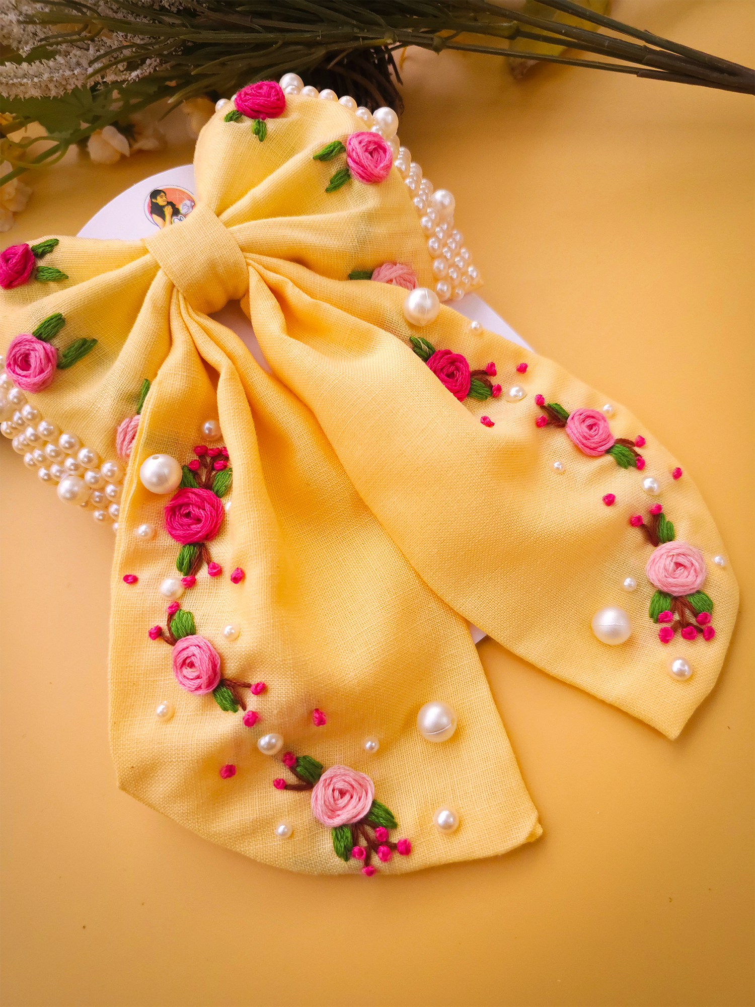 To maintain the beauty of your embroidery bow clips, we recommend gently spot cleaning with a damp cloth as needed. Avoid submerging them in water or exposing them to harsh chemicals, as this may damage the delicate embroidery. Store them in a cool, dry place away from direct sunlight when not in use to prevent fading or discoloration.