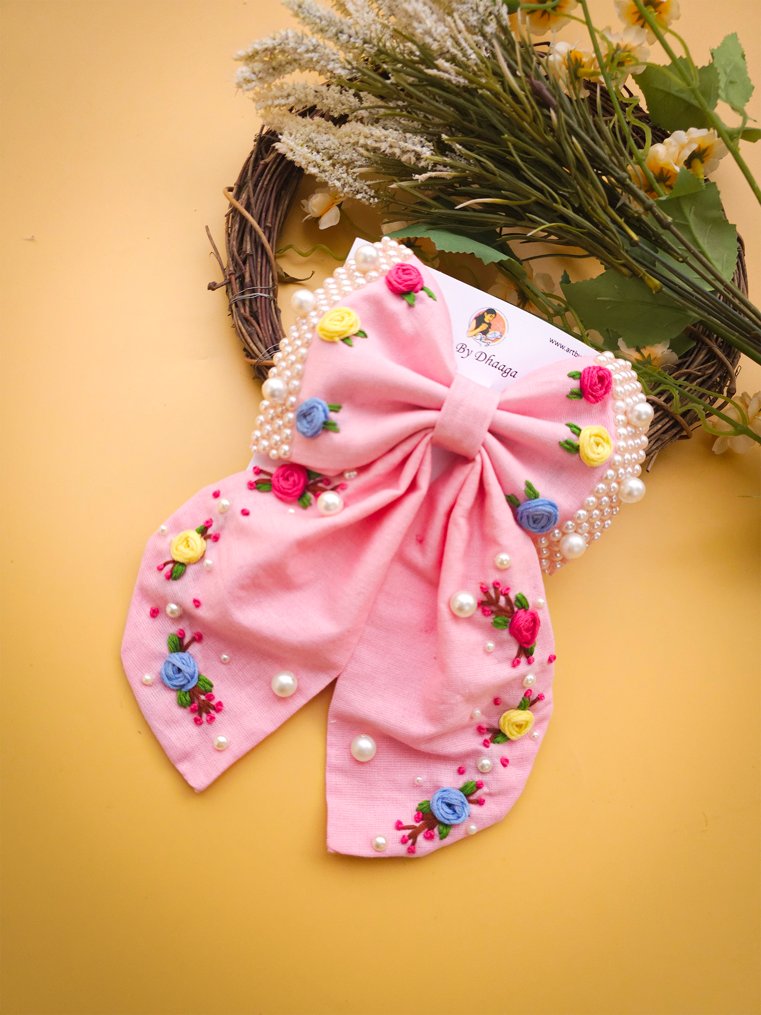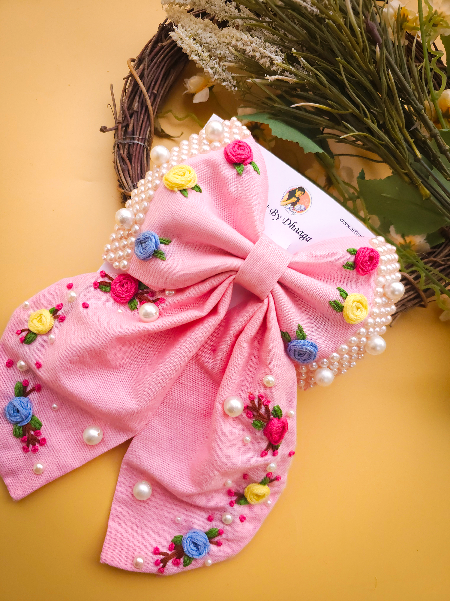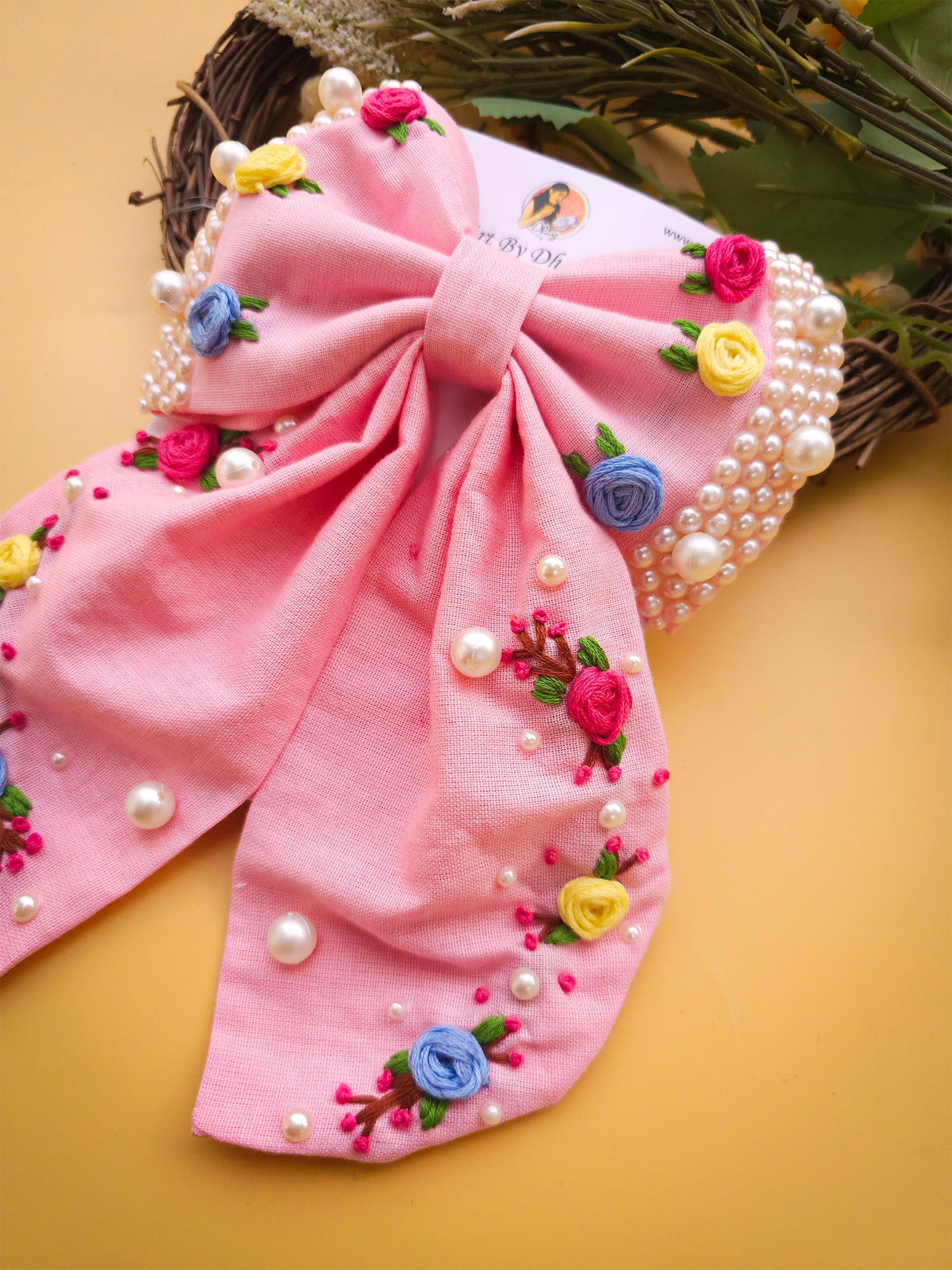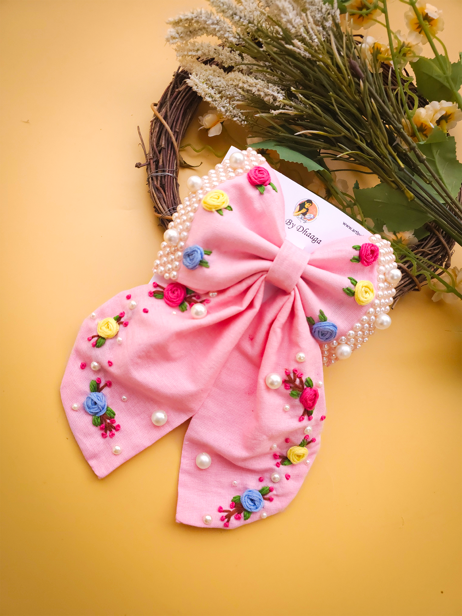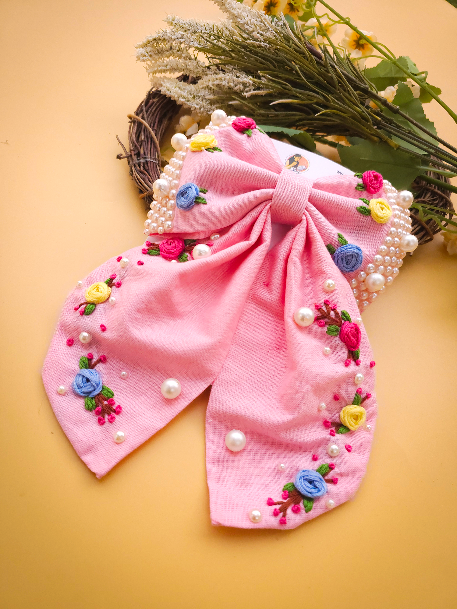 To maintain the beauty of your embroidery bow clips, we recommend gently spot cleaning with a damp cloth as needed. Avoid submerging them in water or exposing them to harsh chemicals, as this may damage the delicate embroidery. Store them in a cool, dry place away from direct sunlight when not in use to prevent fading or discoloration.
