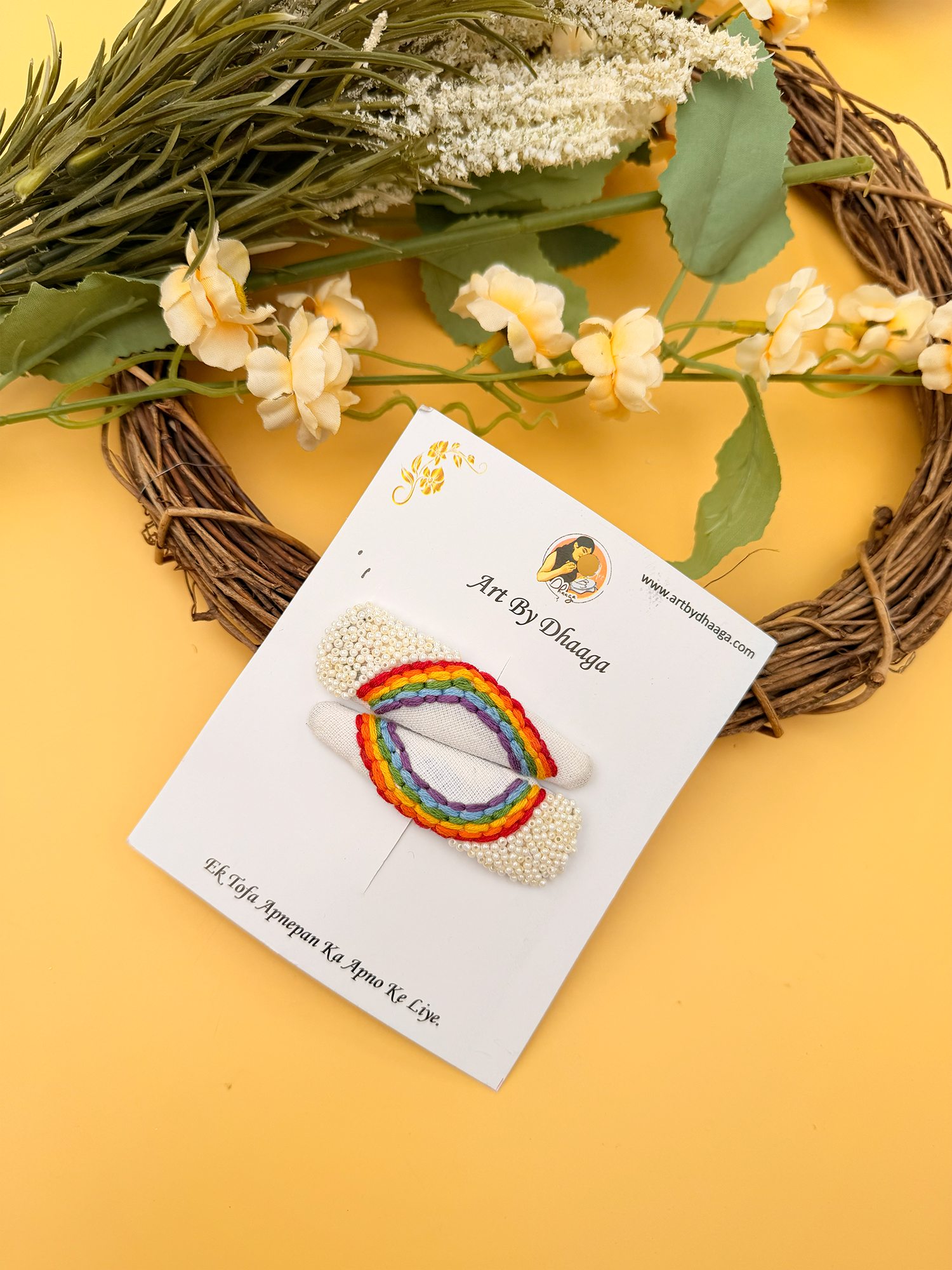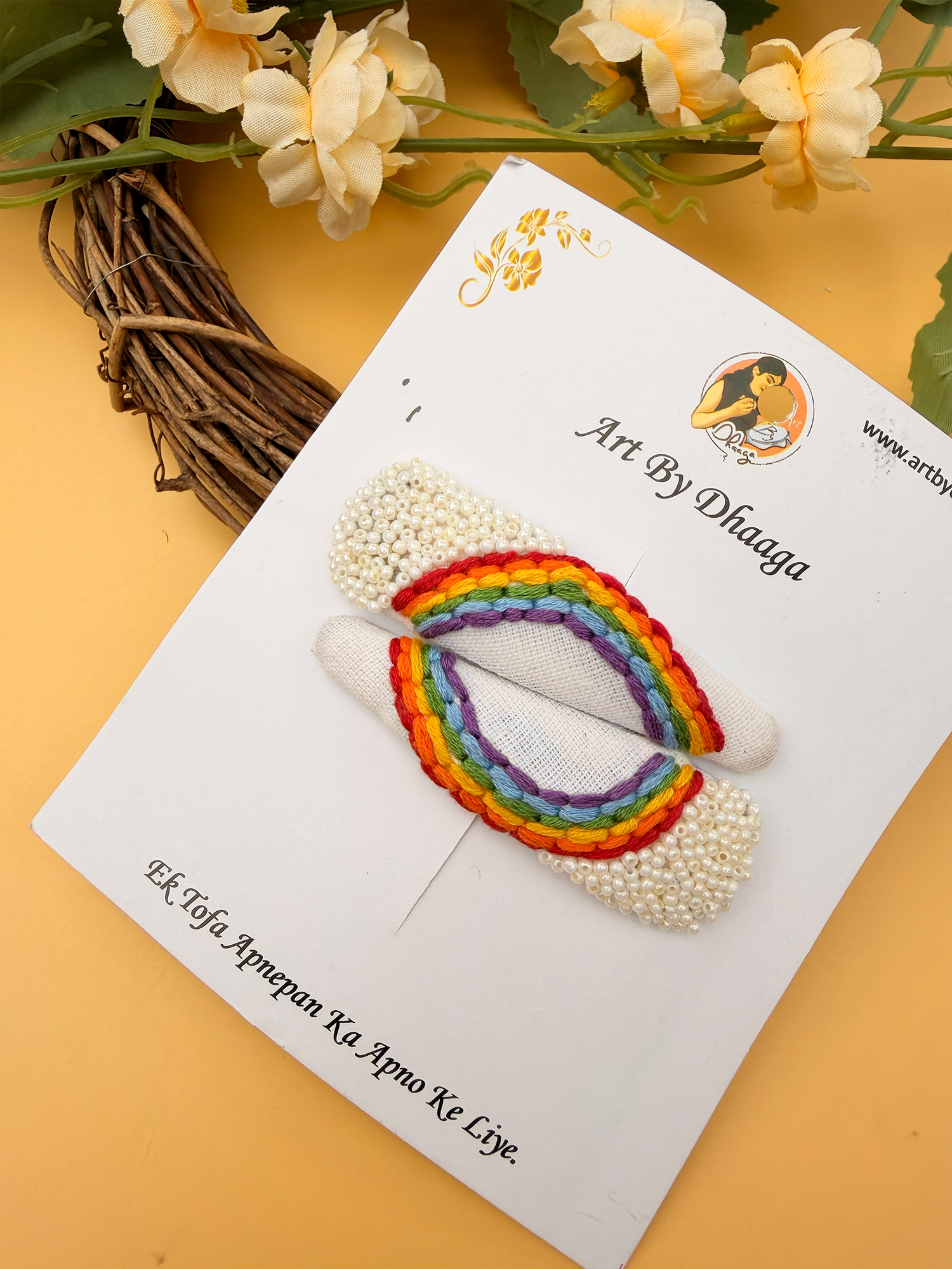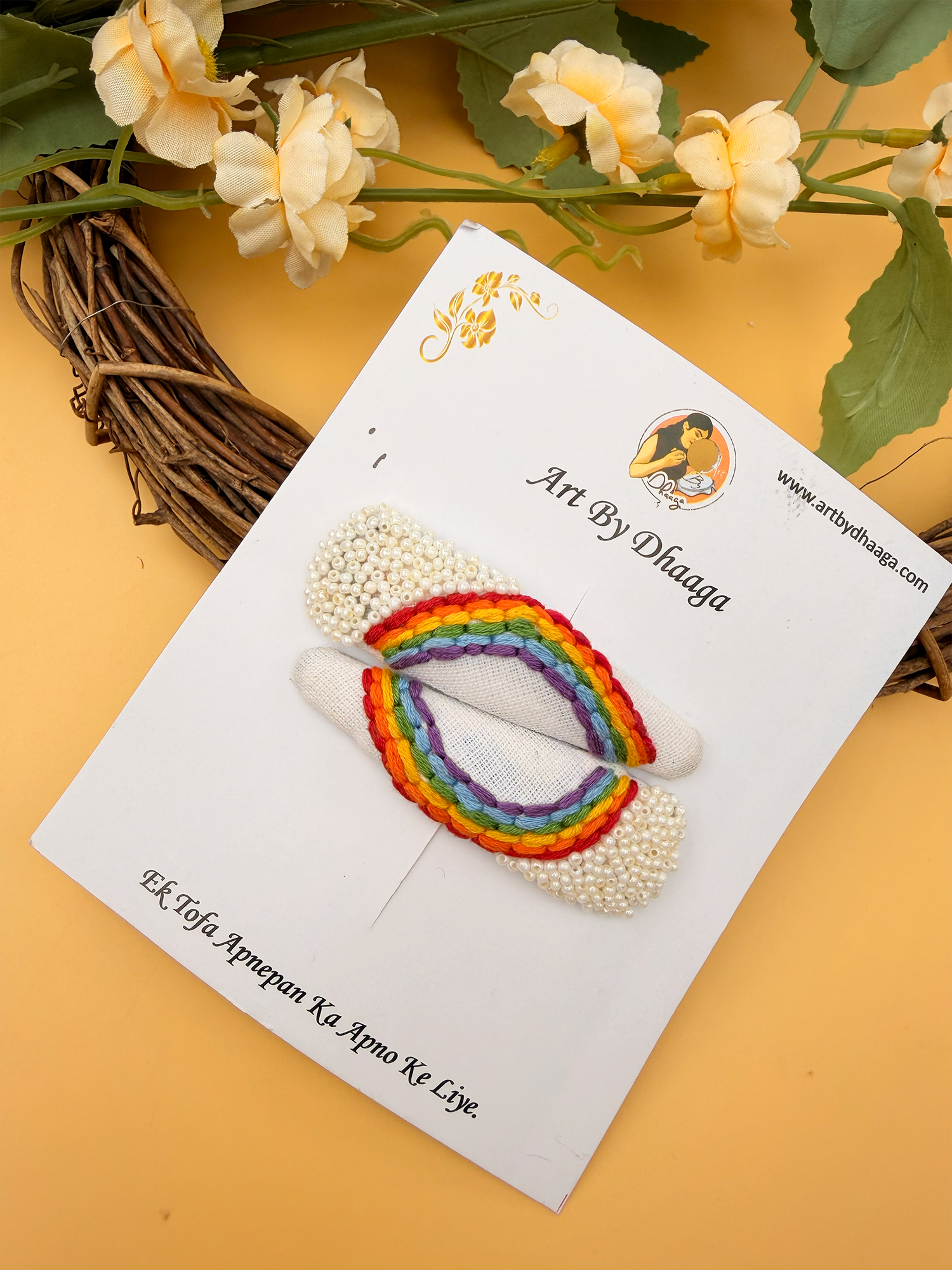 Eco-Friendly Packaging: At Art By Dhaaga, we are committed to sustainability. That’s why our embroidery tic tac hair clips come packaged in eco-friendly materials, we cannot completely cut using plastic but we try use less as much as we can ensuring that every aspect of your purchase aligns with our dedication to the planet.