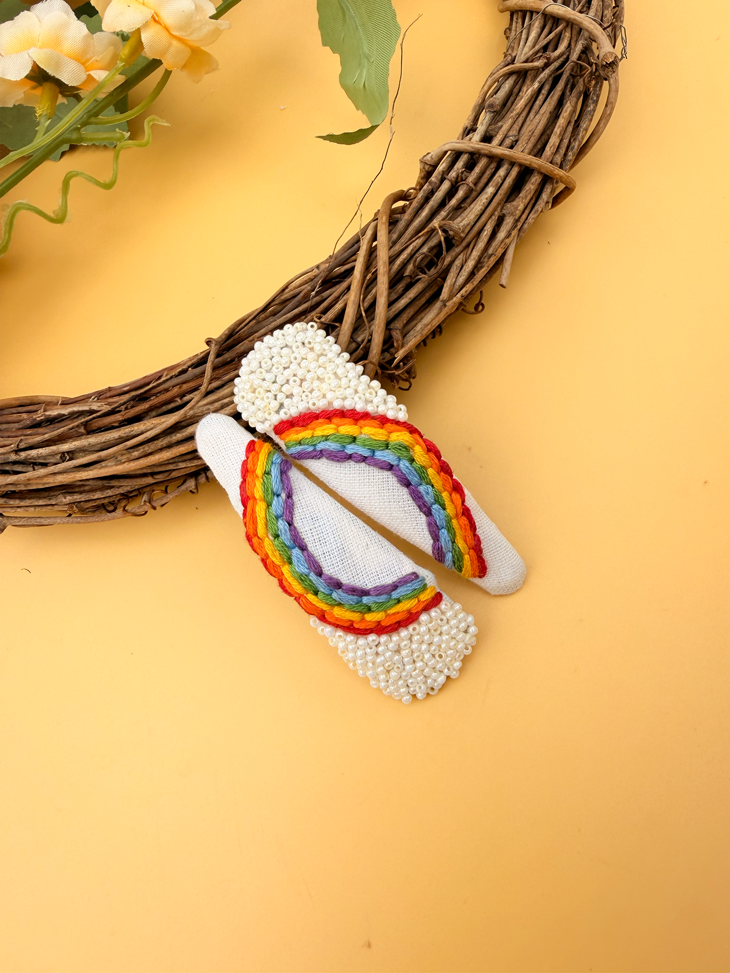 Materials: Our clips are crafted using premium-quality , thread, beads and fabric ensuring durability and longevity. The embroidery is meticulously stitched onto a sturdy base, guaranteeing that each piece is both beautiful and resilient. We prioritize eco-friendly materials, striving to minimize our environmental footprint while delivering exceptional products.