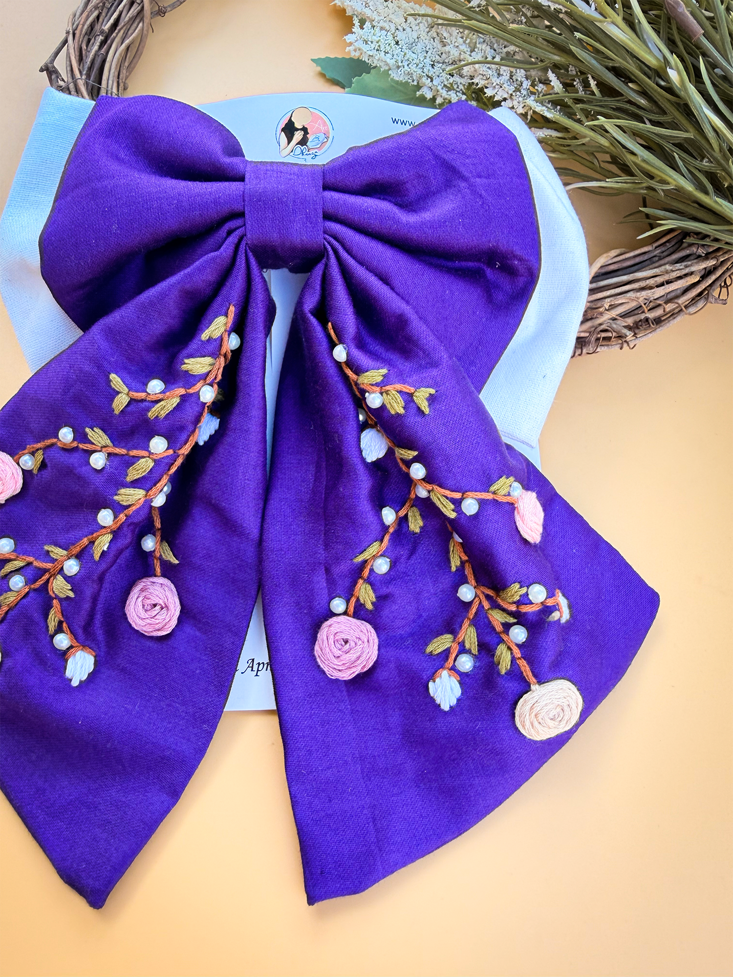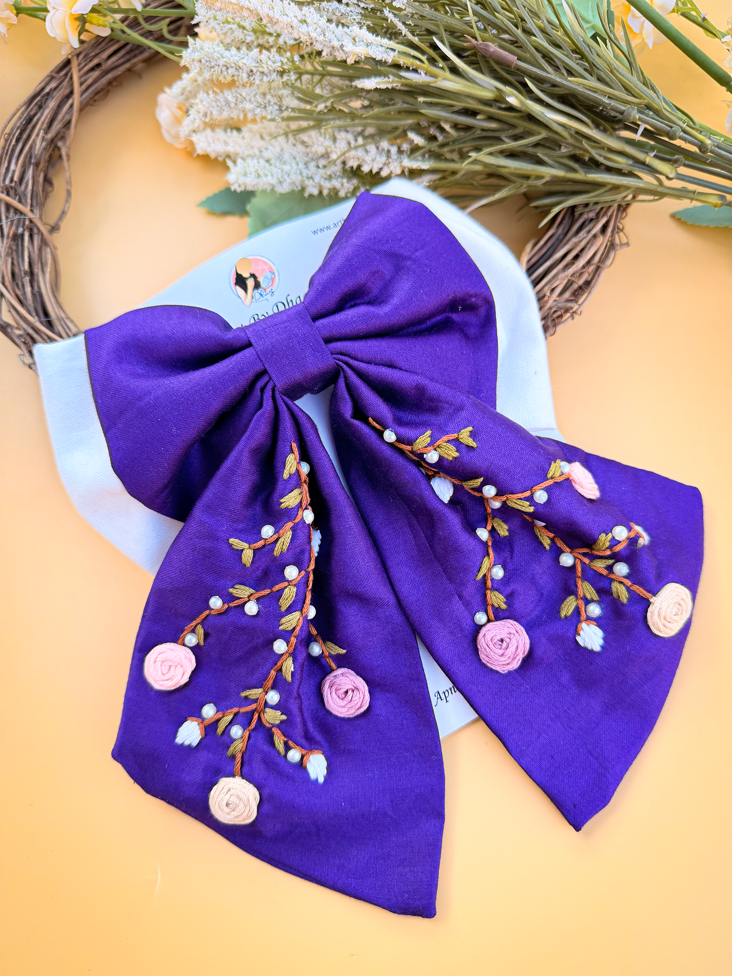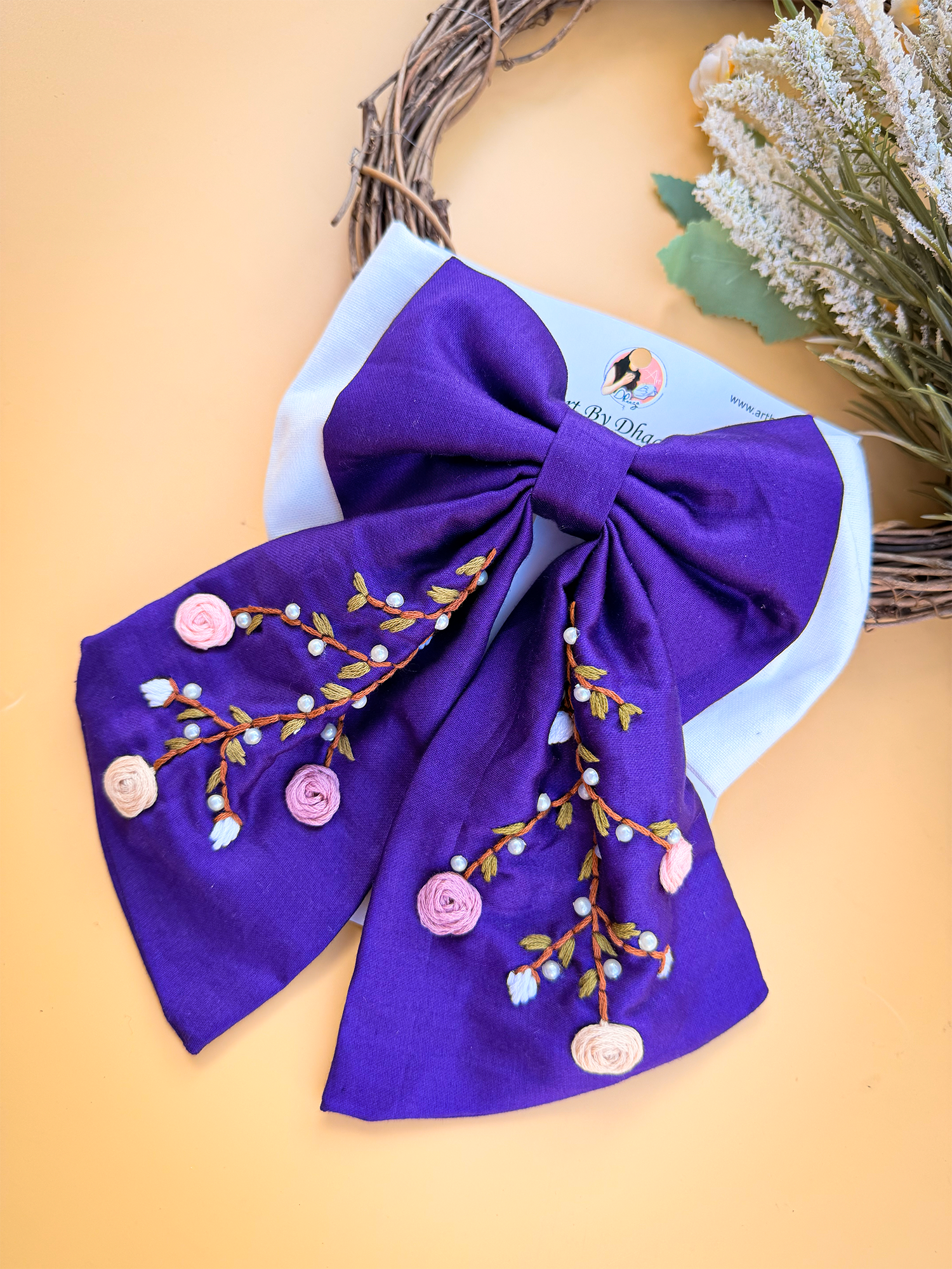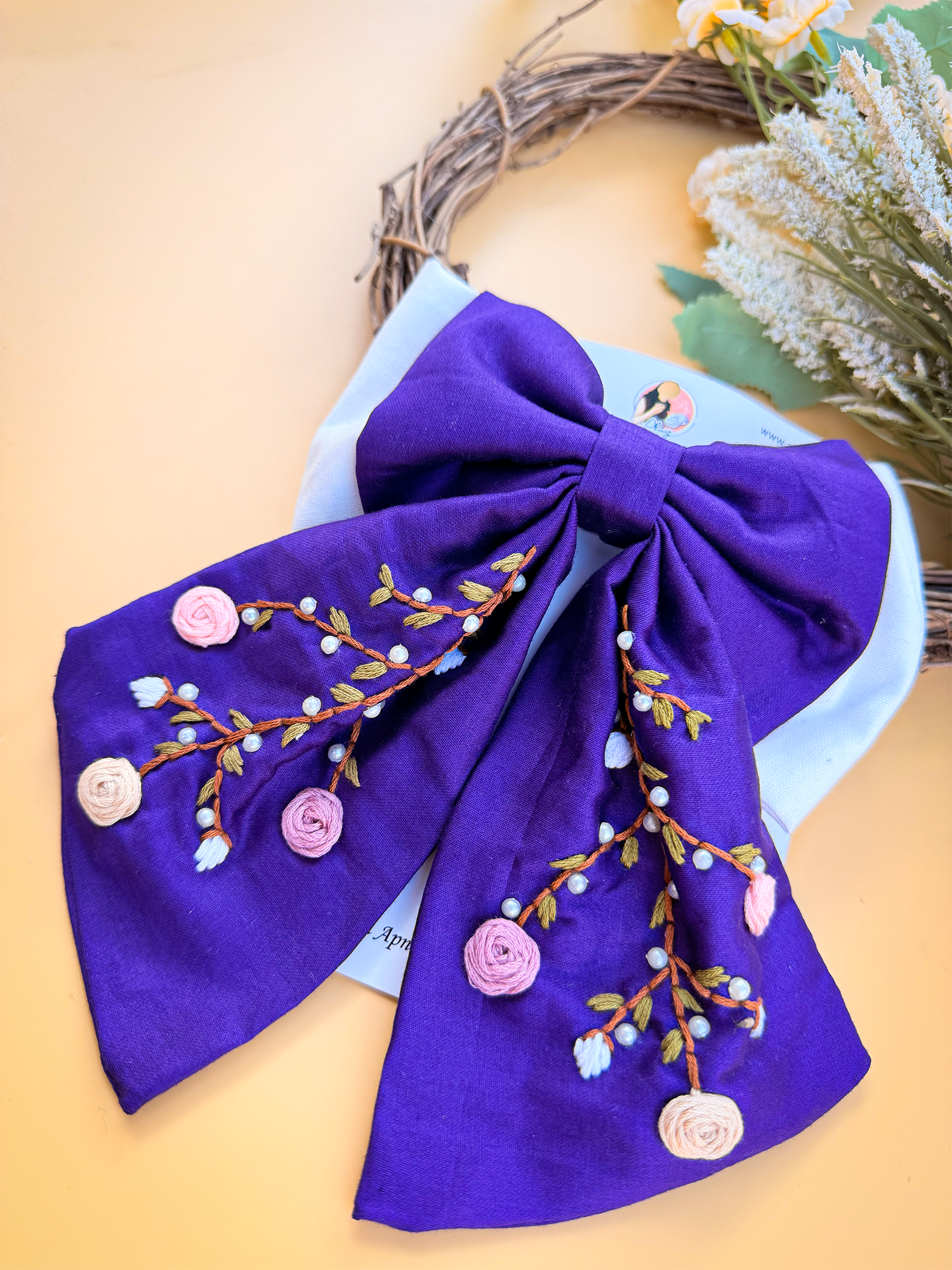 To maintain the beauty of your embroidery bow clips, we recommend gently spot cleaning with a damp cloth as needed. Avoid submerging them in water or exposing them to harsh chemicals, as this may damage the delicate embroidery. Store them in a cool, dry place away from direct sunlight when not in use to prevent fading or discoloration.