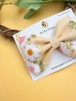 The neutral beige base makes this bow easy to style with any outfit, while the floral embroidery brings in a gentle handmade touch. Lightweight and neatly structured, it sits comfortably on hair and works perfectly for both everyday wear and special moments.