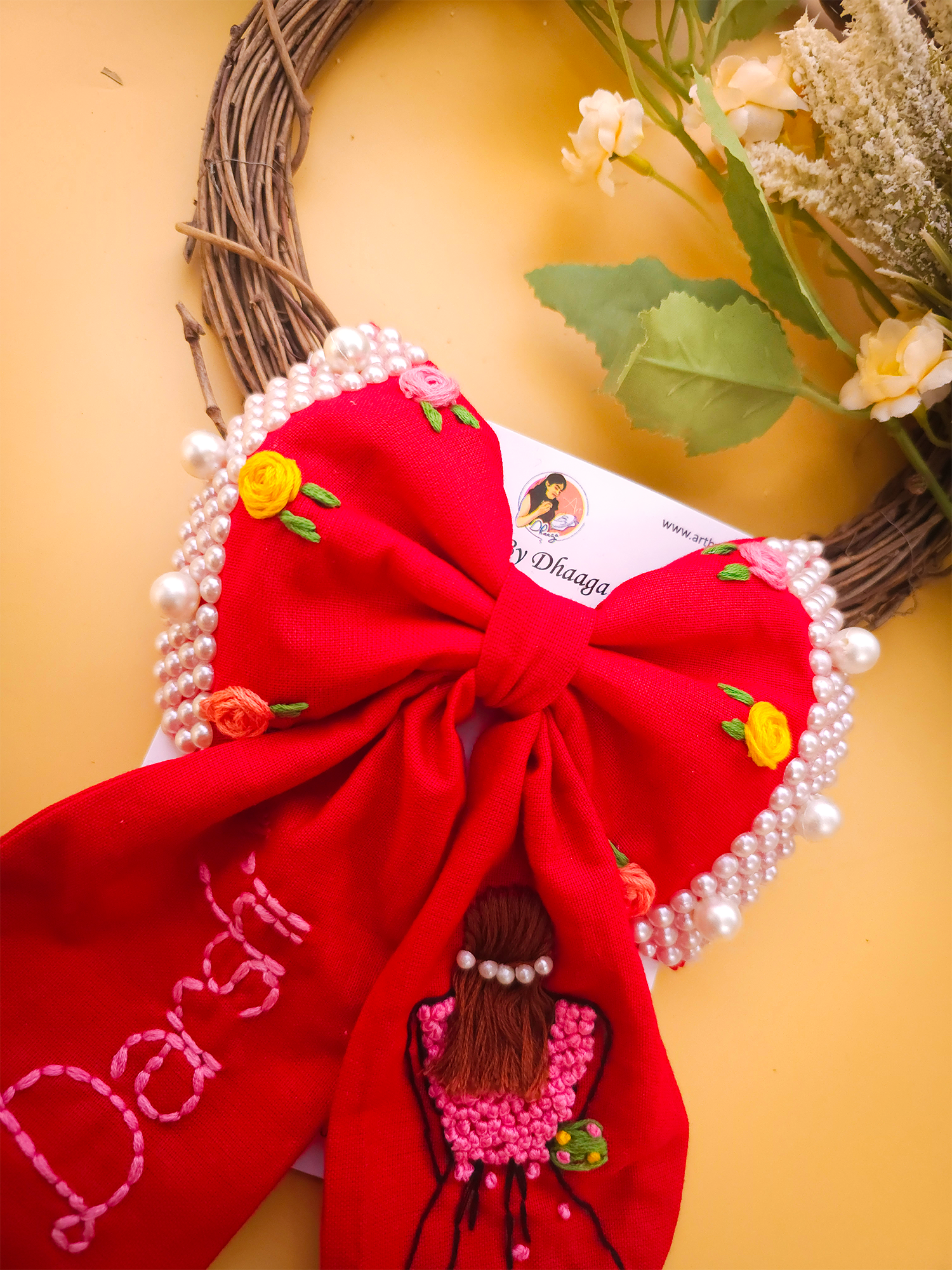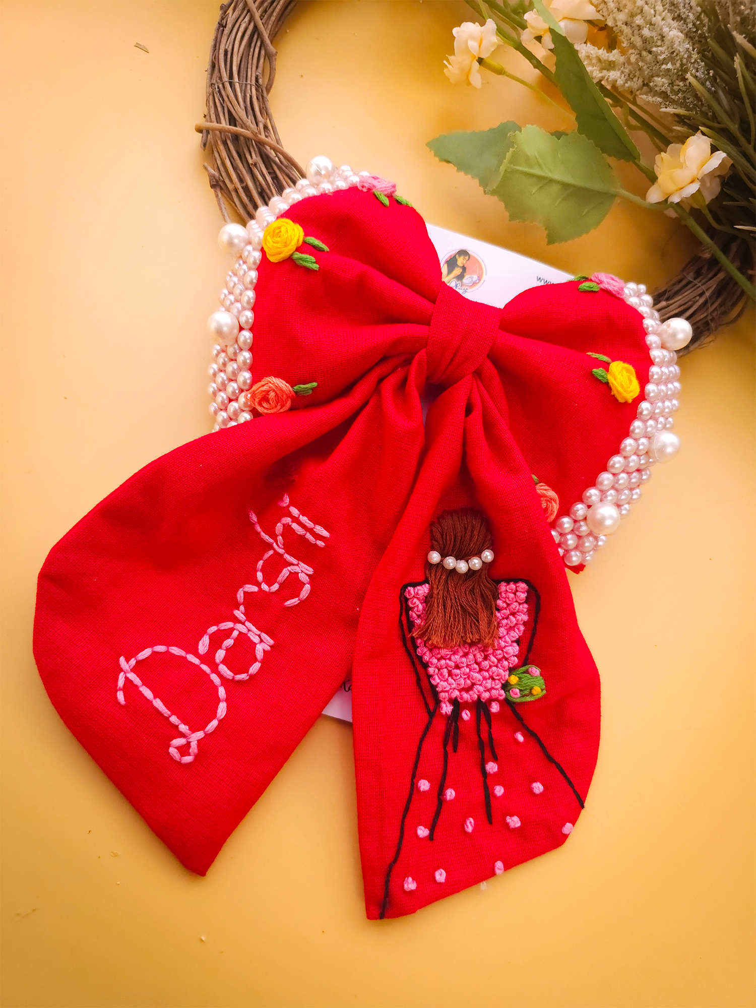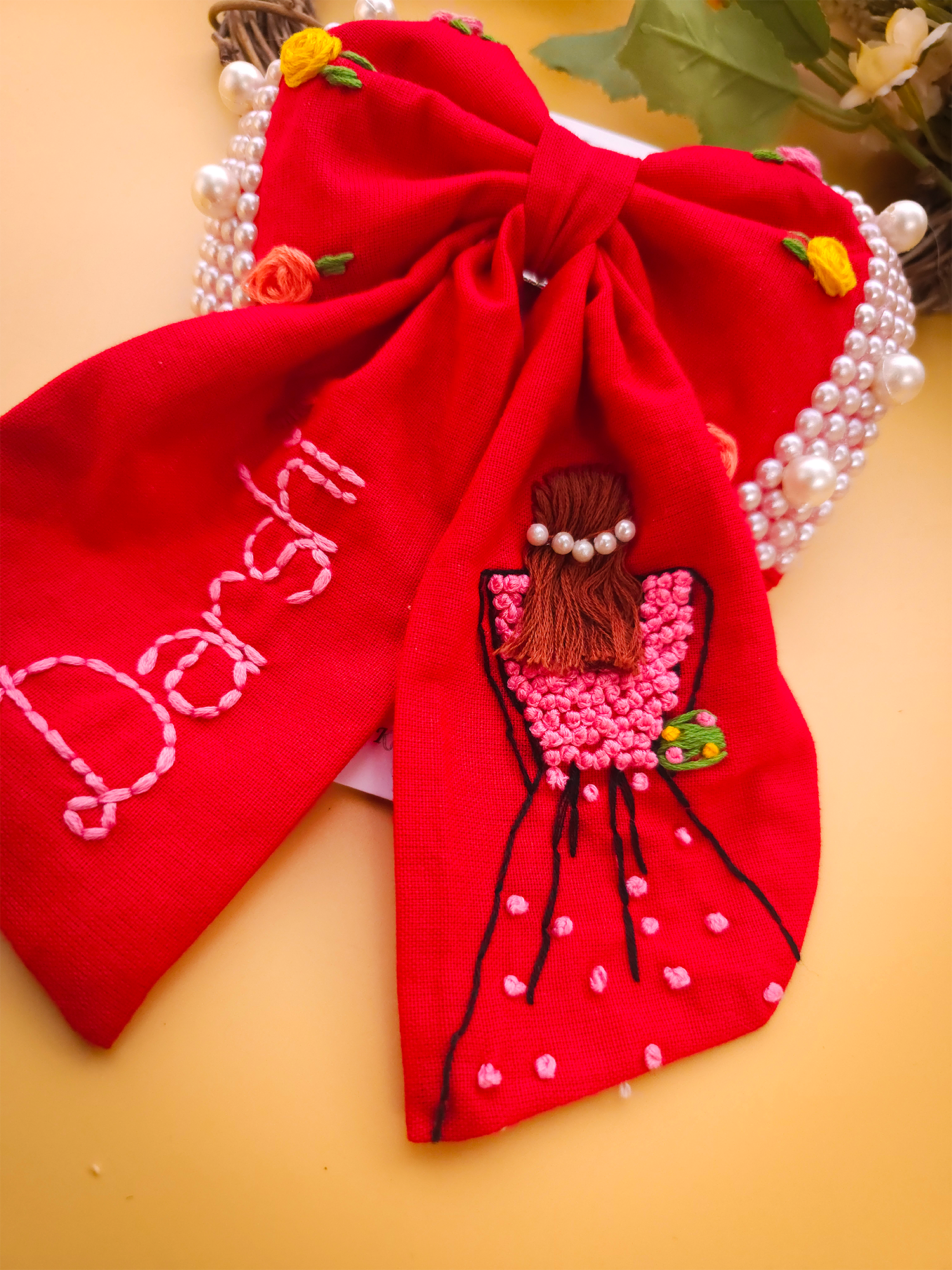 To maintain the beauty of your embroidery bow clips, we recommend gently spot cleaning with a damp cloth as needed. Avoid submerging them in water or exposing them to harsh chemicals, as this may damage the delicate embroidery. Store them in a cool, dry place away from direct sunlight when not in use to prevent fading or discoloration.