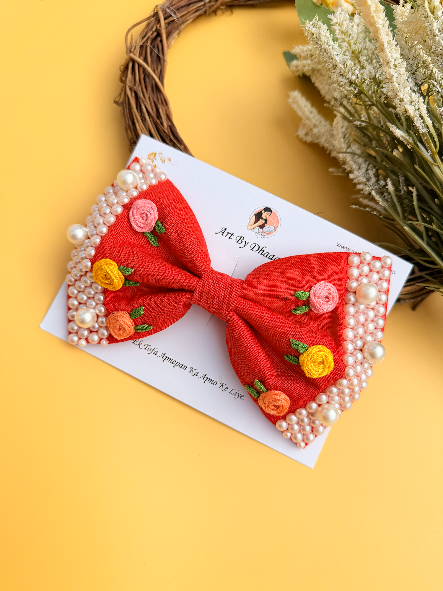 To maintain the beauty of your embroidery bow clips, we recommend gently spot cleaning with a damp cloth as needed. Avoid submerging them in water or exposing them to harsh chemicals, as this may damage the delicate embroidery. Store them in a cool, dry place away from direct sunlight when not in use to prevent fading or discoloration.