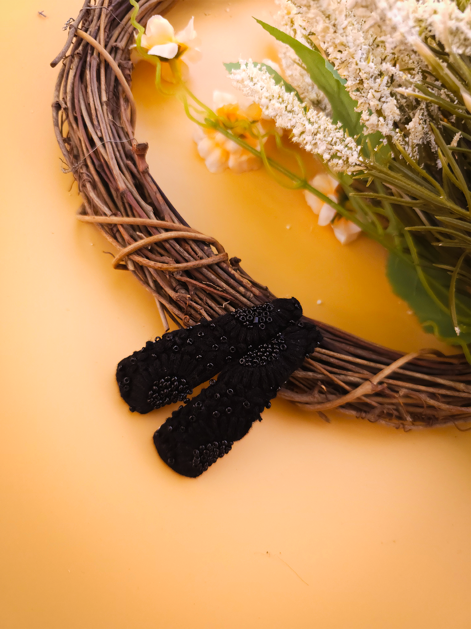 Materials: Our clips are crafted using premium-quality , thread, beads and fabric ensuring durability and longevity. The embroidery is meticulously stitched onto a sturdy base, guaranteeing that each piece is both beautiful and resilient. We prioritize eco-friendly materials, striving to minimize our environmental footprint while delivering exceptional products.