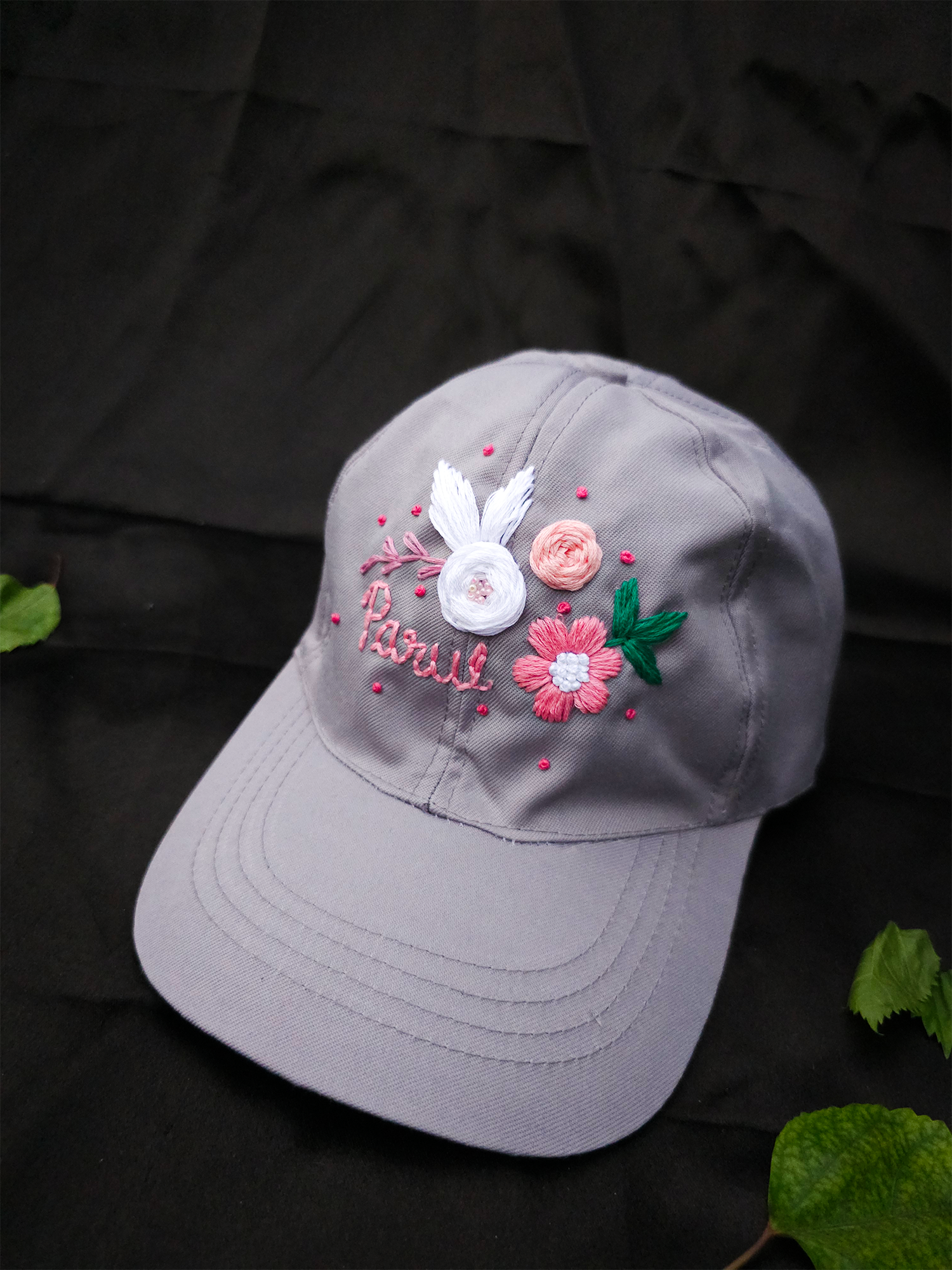 Grey Blush – Hand-Embroidered Summer Cap