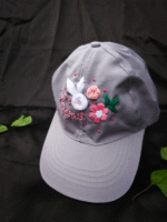 Grey Blush is a soft grey summer cap, hand-embroidered with delicate white and blush-pink florals — perfect for adding a gentle charm to any outfit. 🌸