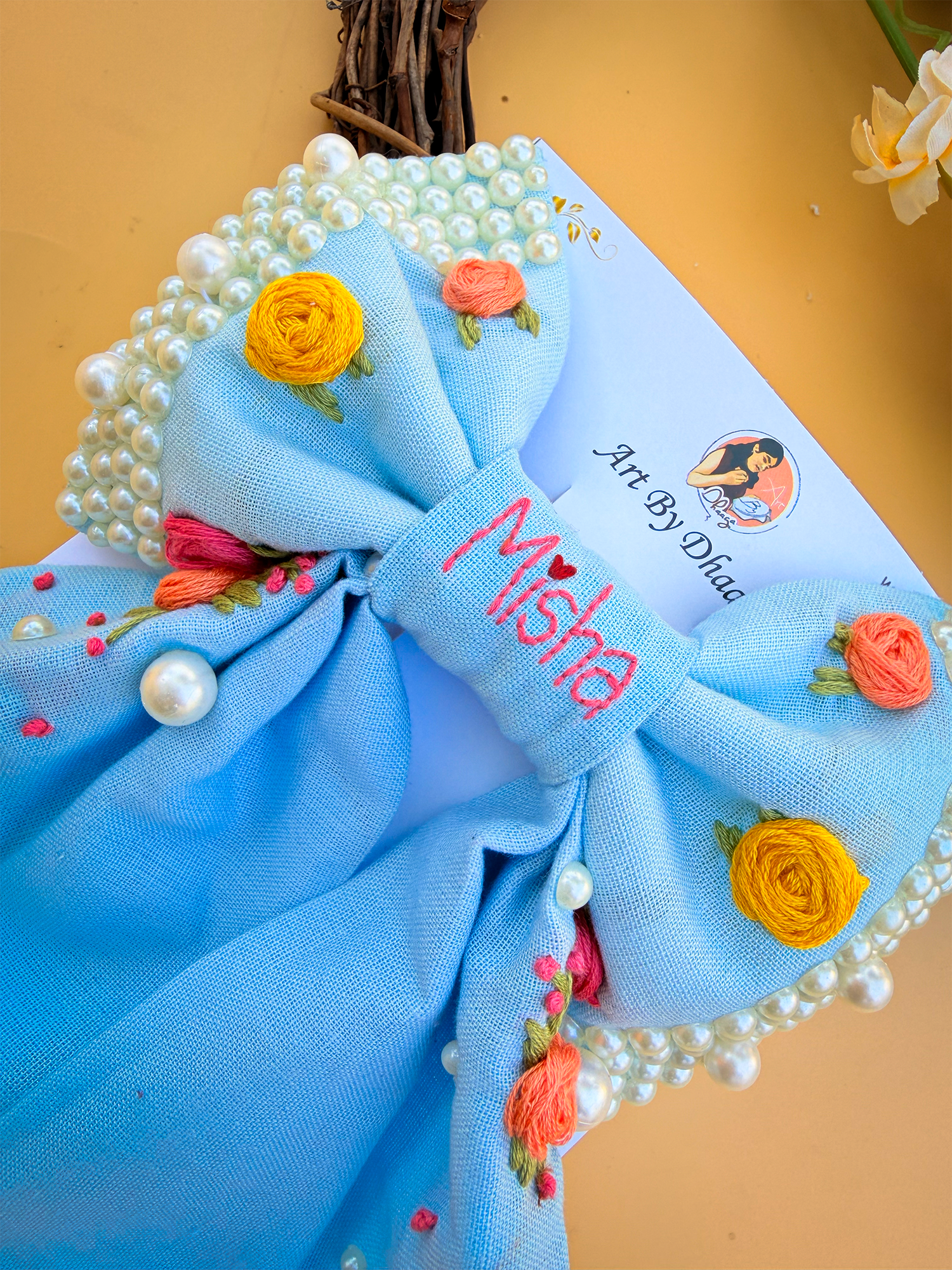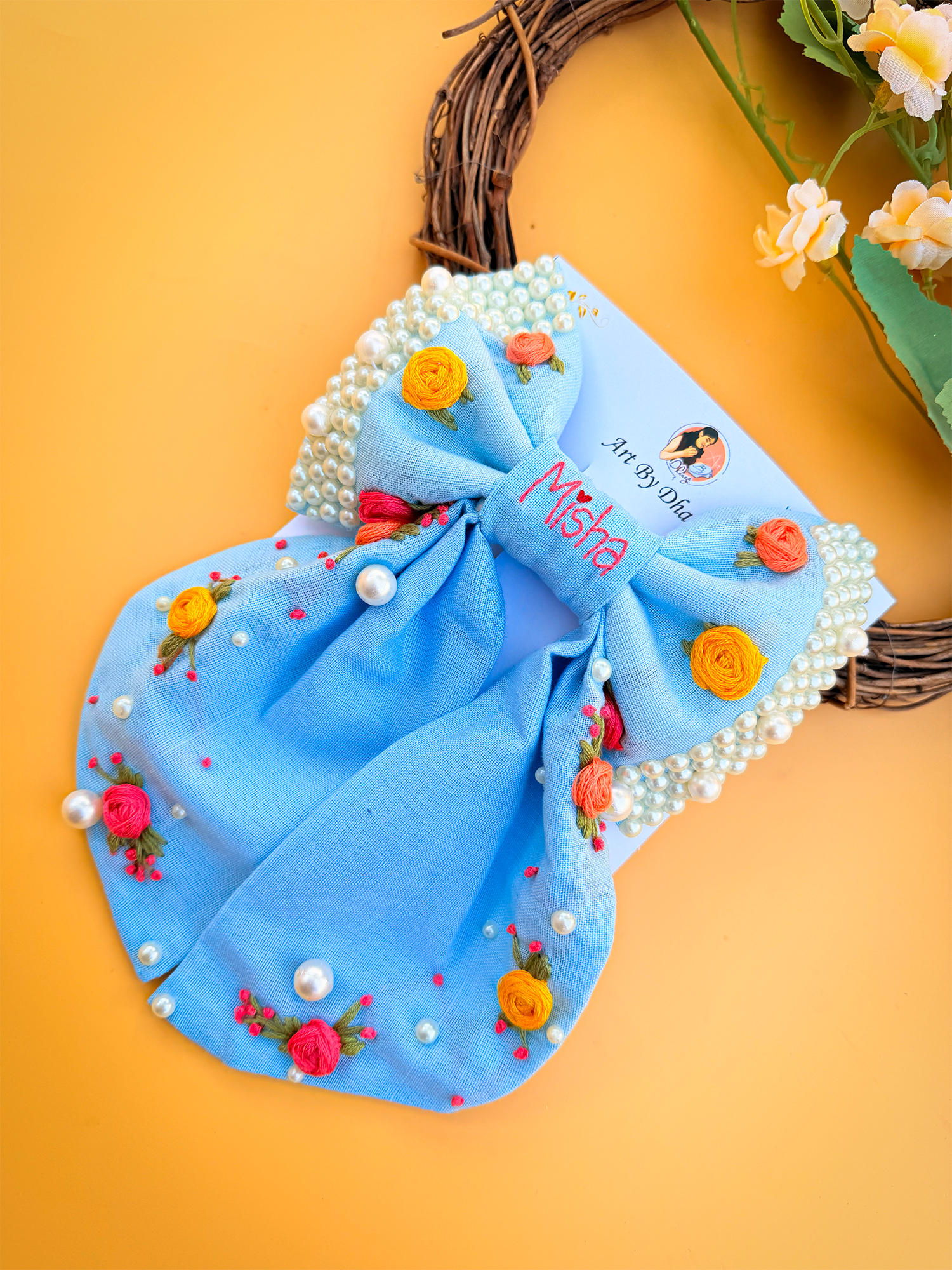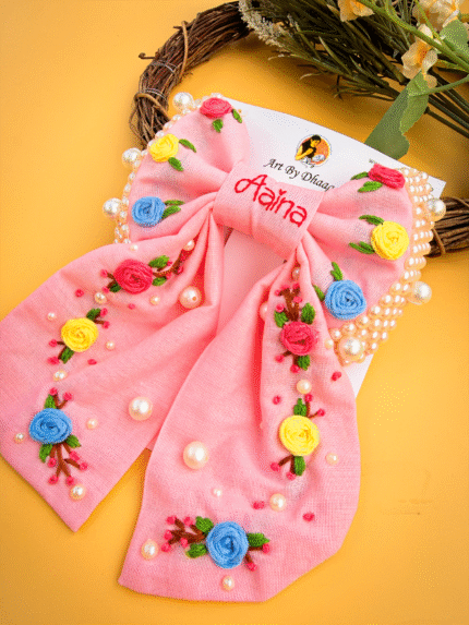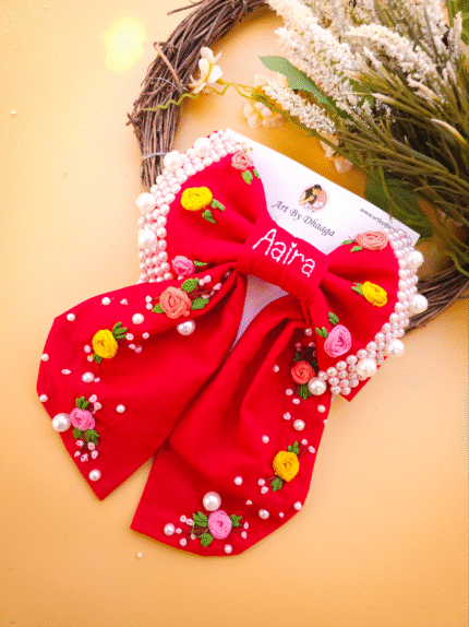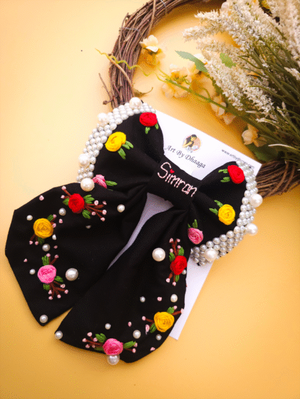Crafted with vibrant, long-lasting embroidery threads and secured on a sturdy clip, every bow is a unique piece of art – designed to last and impress.