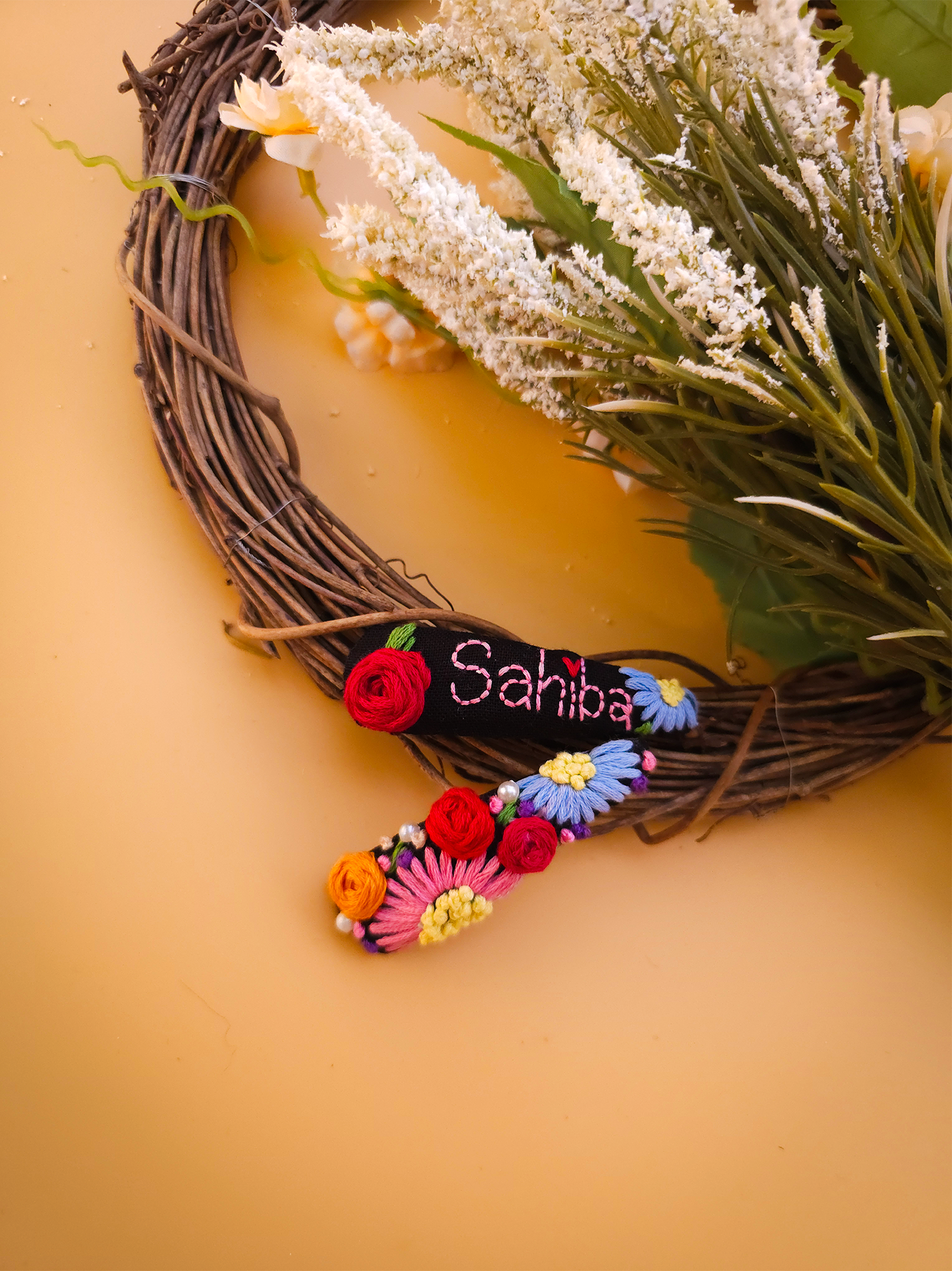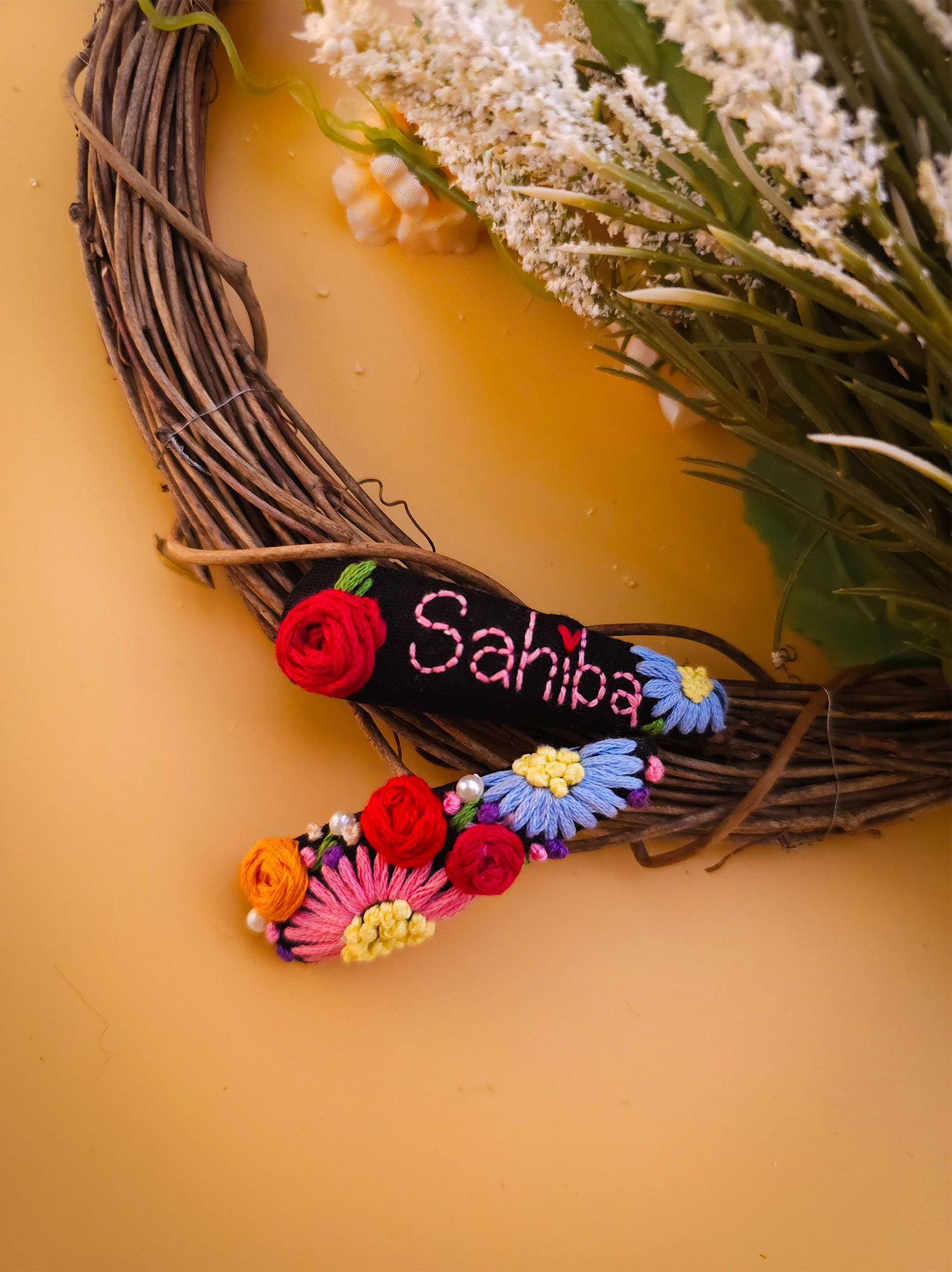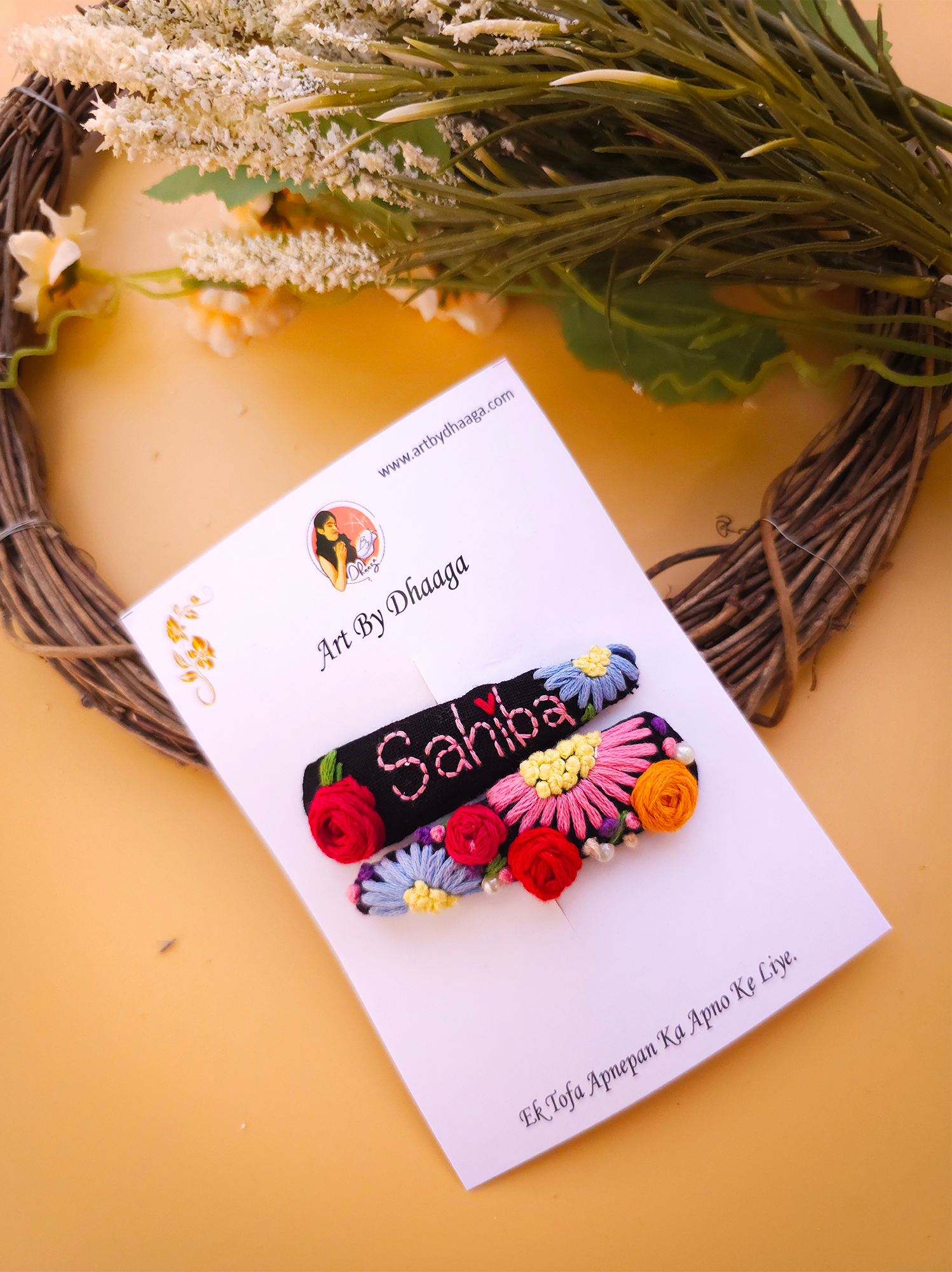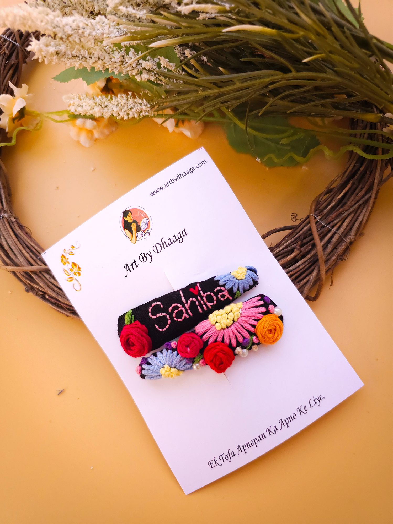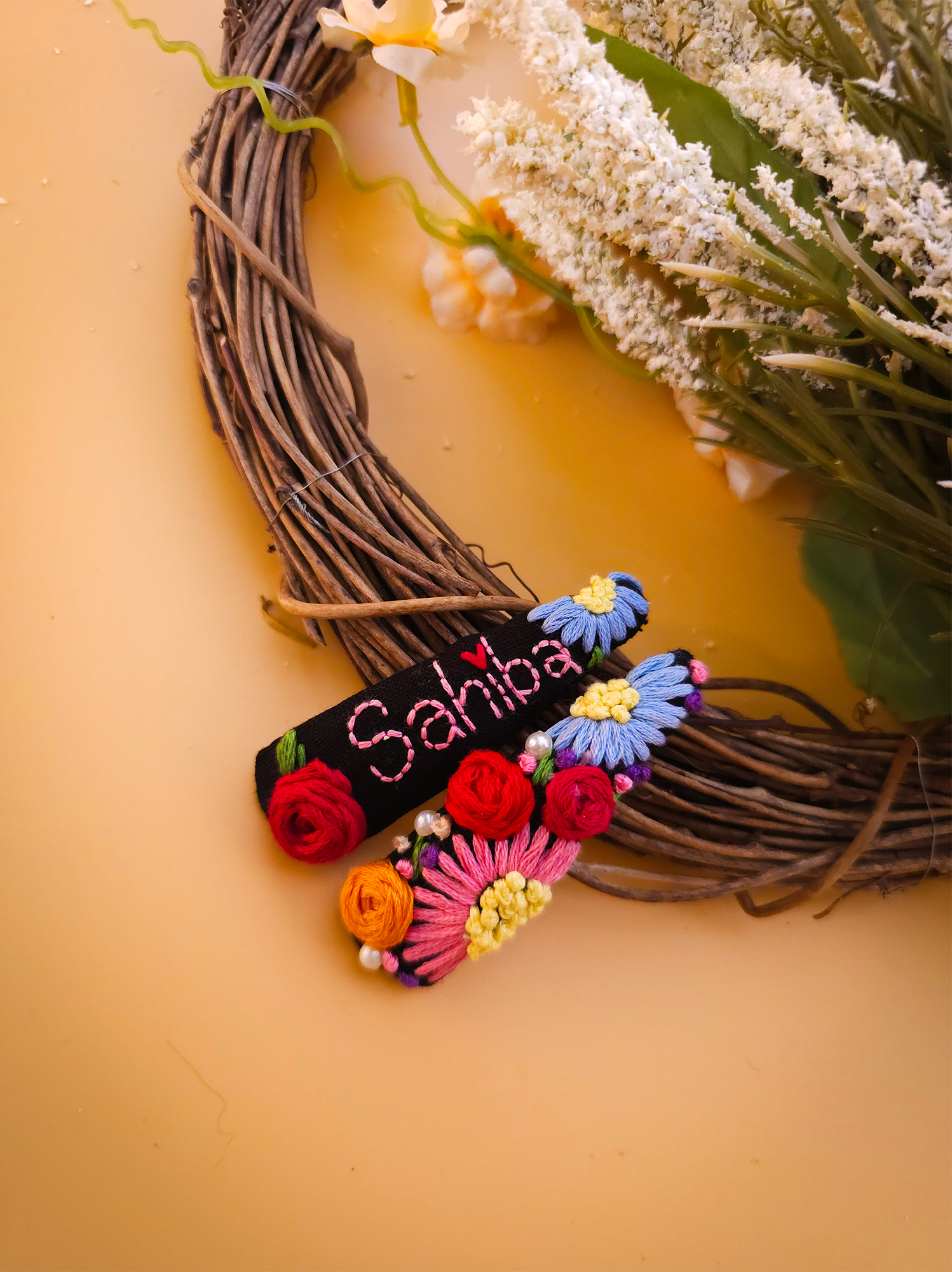 Elevate your hairstyle with our Name Embroidery Tic Tac Hair Clips – the perfect blend of style, craftsmanship, and sustainability. Discover the beauty of embroidered elegance today.