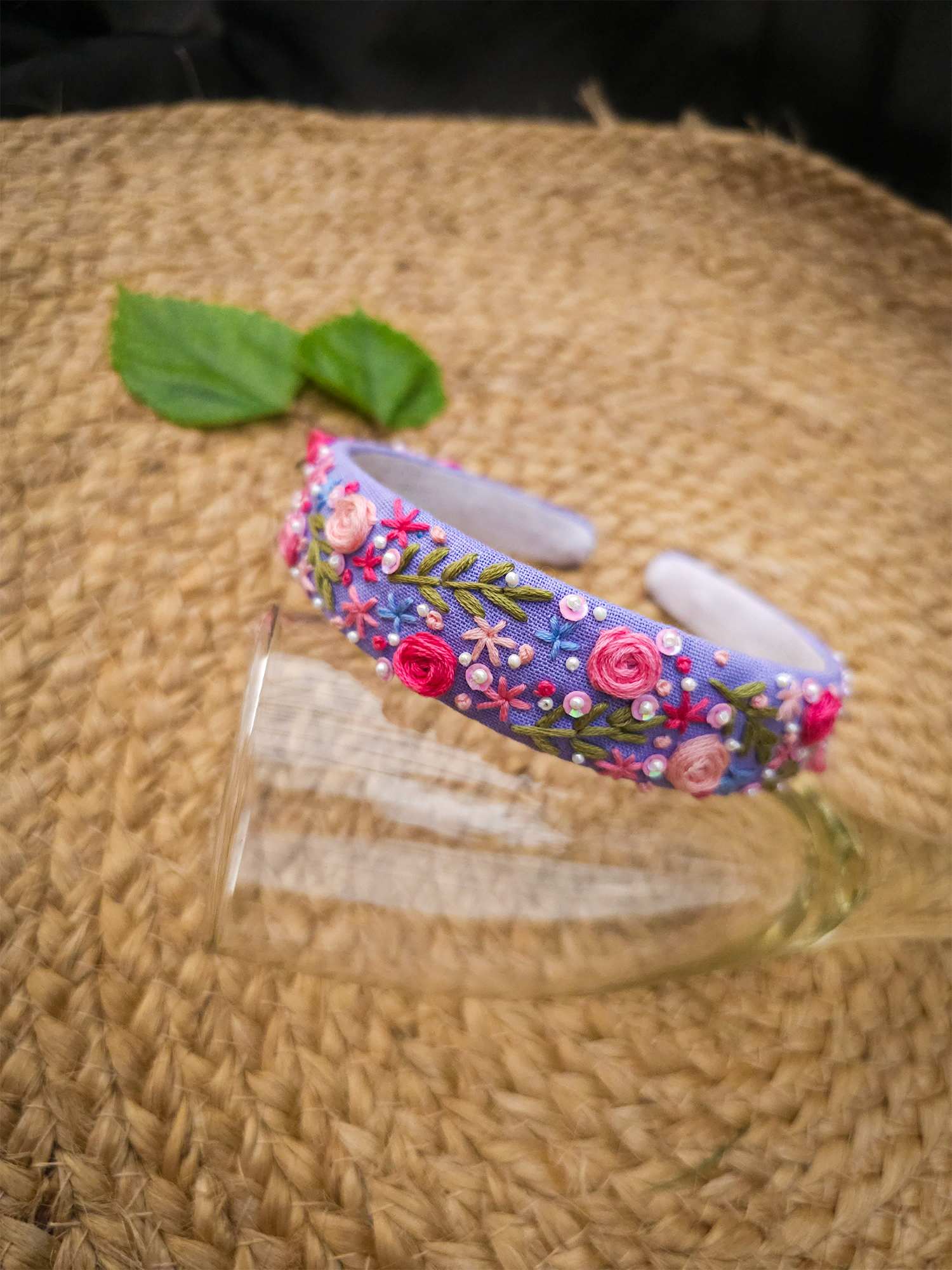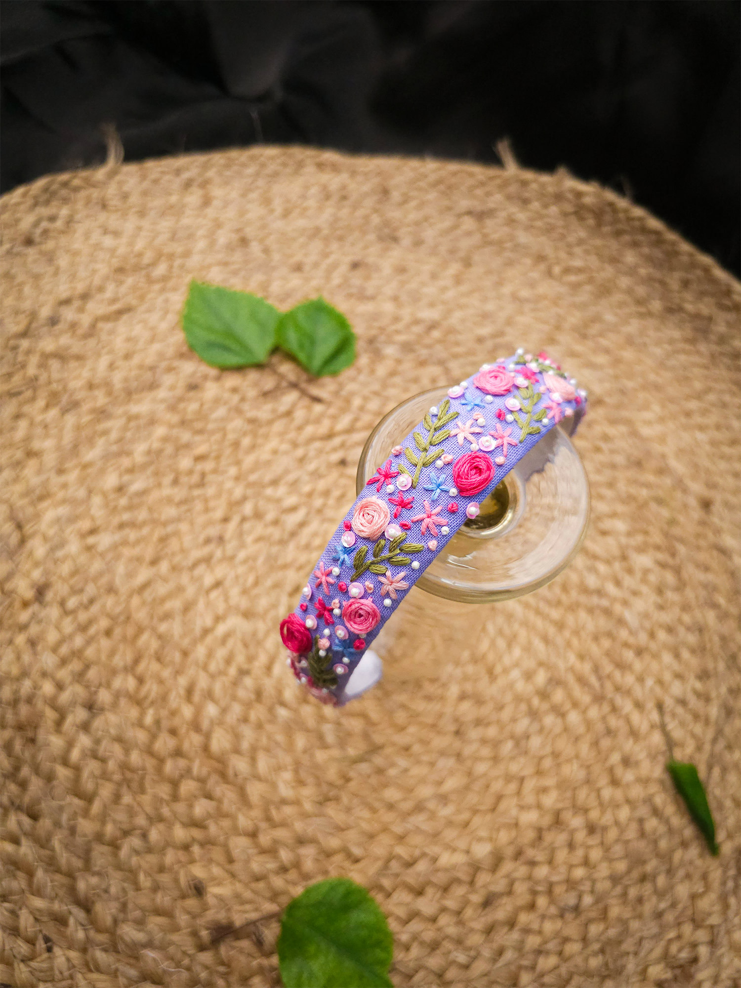 Step into timeless elegance with Royal Rosewood — a hand-embroidered headband in a rich purple base, adorned with delicate pink floral work. Each stitch tells a story of artistry, patience, and love, making this piece as unique as the person who wears it.
