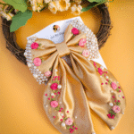 Initial Bow – Hand-Embroidered Rose Name Bow