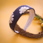 💙 Denim Daisy Crown – Hand-Embroidered Floral Headband