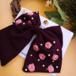 Baby Bloom ❤️ – Hand-Embroidered Floral Baby Bow (Maroon)