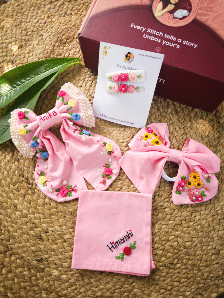 Aayra๐ธ โ Hand-Embroidered Pink Floral Hair Bow