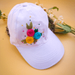 ๐ค Rosy White Cap โ Hand-Embroidered Floral Summer Cap