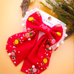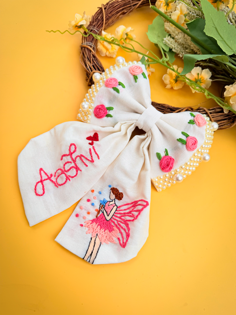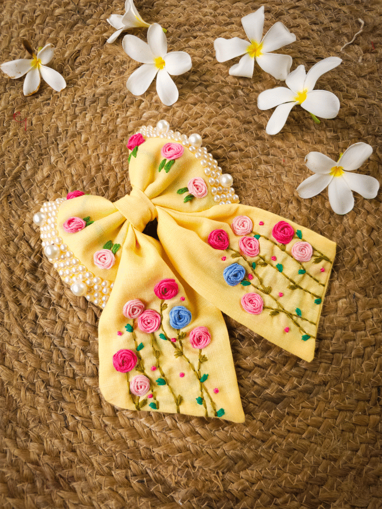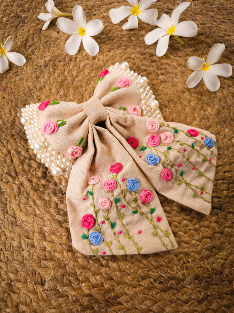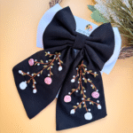 Aaradhya-Black🖤 – Hand-Embroidered Floral Tail Bow